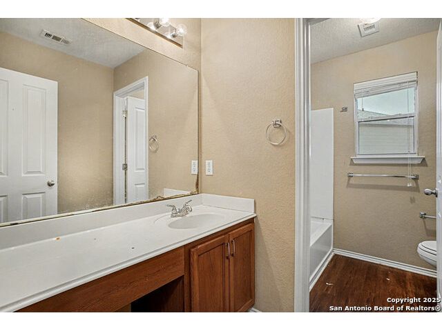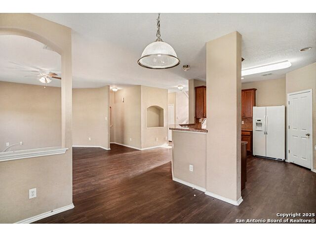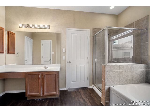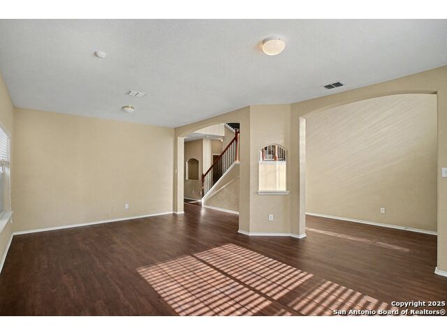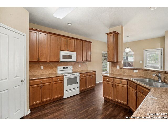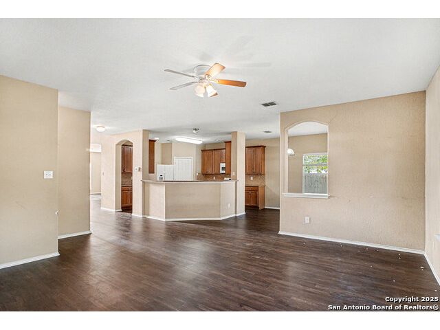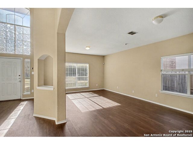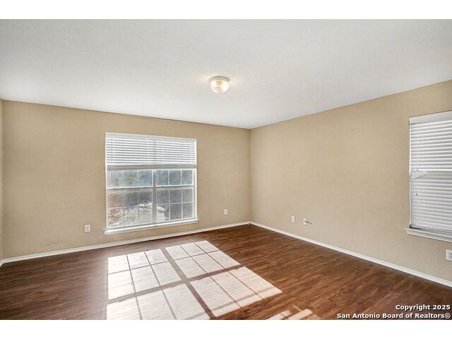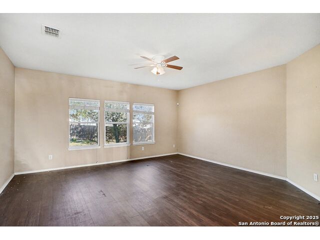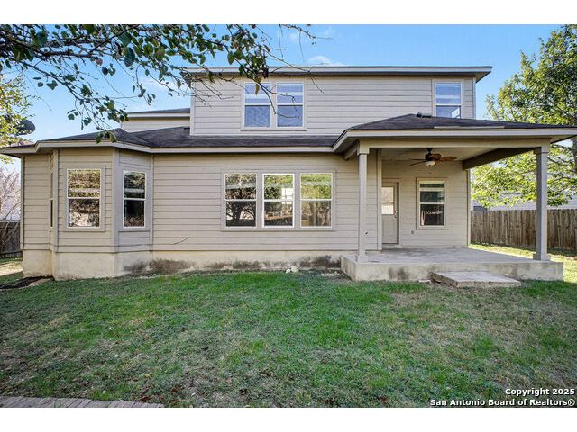 Welcome to this huge 5-bedroom, 3.5-bathroom home offering over 3,600 sq ft of living space, beautifully situated on a cul-de-sac in Converse! Upon entry, you are greeted by a two-story foyer that leads to the formal dining room. Conveniently located off the dining room are the powder room, laundry room, and garage access. Flowing further, you will find the huge kitchen, which is equipped with laminate countertops, white appliances, and tons of counter space. The adjacent breakfast area provides access to the fenced-in backyard, which includes a covered back porch and large greenspace perfect for entertaining. The living room is right off the kitchen, creating an ideal flow for gatherings. The primary bedroom is a peaceful retreat located on the ground level, featuring large windows for ample natural light. The attached ensuite includes a garden tub, standing shower, and closet. Upstairs, you are welcomed by a huge flex space that is perfect as a game room or media area. The rest of the secondary bedrooms are generously sized and feature large closets. Located just 30 minutes from JBSA Randolph and Fort Sam Houston, this home is perfect for anyone seeking convenience and comfort. Schedule your showings today!