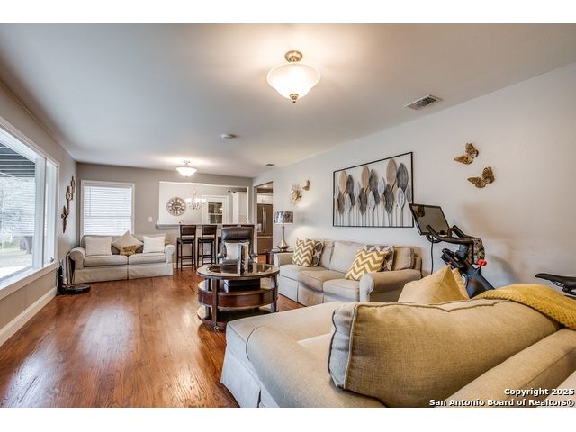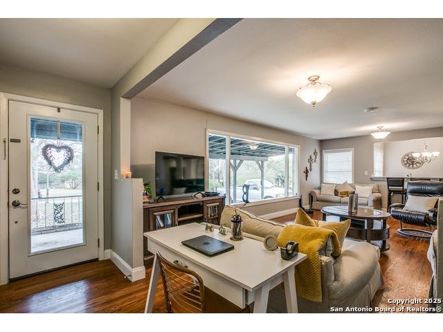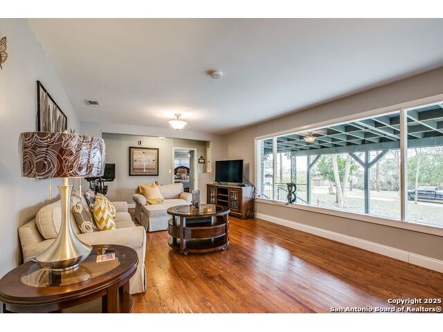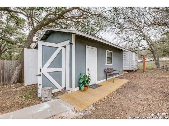 Just off IH 35N this home is convenient to shopping, entertainment, hospital and dining options. Built in 1961, the home features real oak flooring, an open floorplan, there are three bedrooms and two baths. The living room can be set as a living/dining room combination. A hallway keeps foot traffic from needing to go through the living room. The master has two closets. The picture window in the living room is a great place to watch the deer that roam in the evenings. The home features a two-car garage, a carport and an additional building with bath that can be used as an Air-B-B rental, the city requires the homeowner to have the homestead exemption for approval of Air-B-B units. The washer and dryer hookups are located in the garage, and there is also a 10' x 16' storage room in the backyard. We are making some cosmetic repairs. Seller financing. Tennat occupied until end of January 2025.