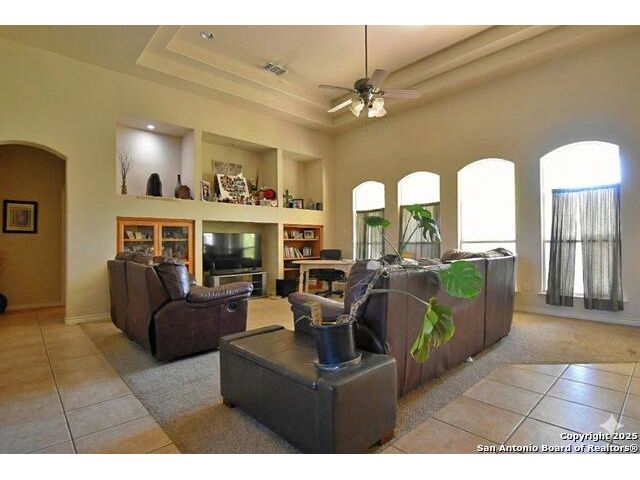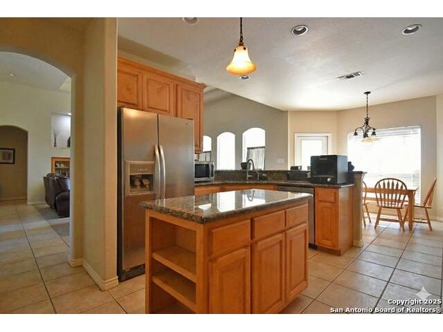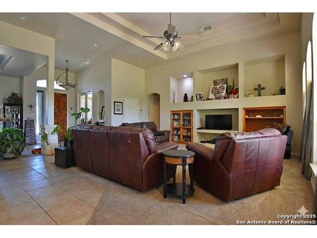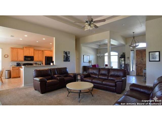 Discover a spacious custom home on a rare half-acre lot in the El Chaparral / Fertile Valley area. This 3 bedroom, 2.5 bath single-story home offers approximately 2,373 sq ft of living space (per public records) with two large living areas plus a dedicated office with French doors that could function as a flex / 4th room. The layout features tile flooring in the entry, halls, kitchen and baths, with carpet in the bedrooms, office and both living areas. The kitchen includes granite countertops, solid wood cabinets, an in-wall oven (updated several years ago) and an electric cooktop, giving you a solid starting point for a modern refresh. Photos has been decluttered using photo editing.