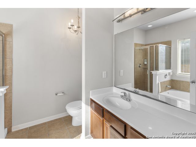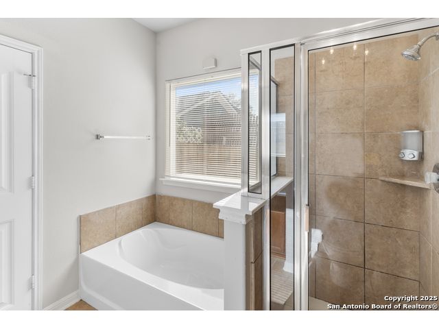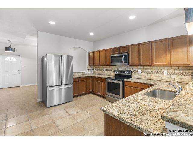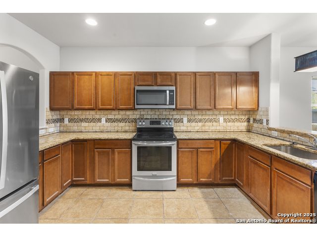 Fantastic location and a well maintained home offering a two story offering a two story 4 bedrooms, 3 full baths and 2,125 Sqft, of open living. The main level provides smooth flow between the living, kitchen, dining areas with cereamic tile flooring, granite kitchen countertops and stainless steel appliances. Refrigerator, washer, dryer, and water softener convey for true move in convenience. The primary suite features a soaking tub, separate shower, double vanity, and two walk in closets. The fully fenced backyard with covered patio provide an inviting outdoor setting. Conveniently located near I-35, Loop 1604, Wurzbach Parkway, IKEA, The Forum, and Randolph AFB, this home offers quick access to major shopping, dining, and employment centers.