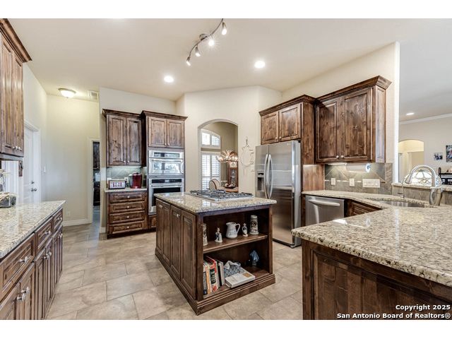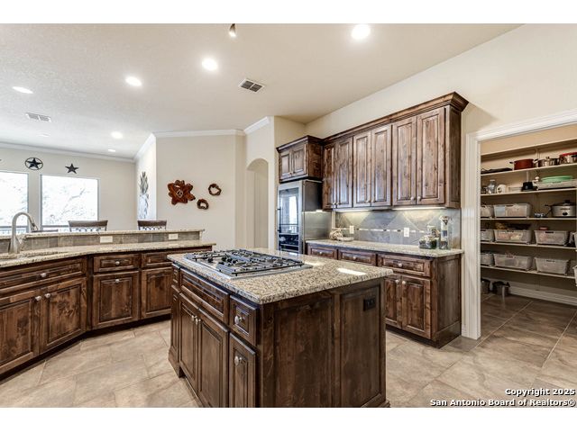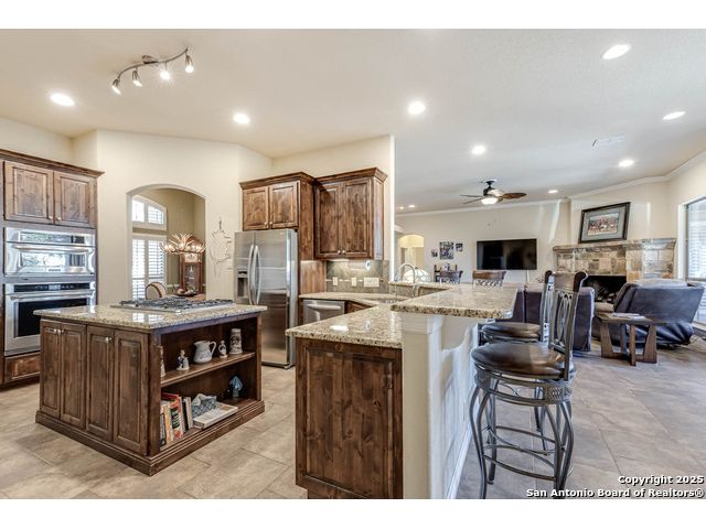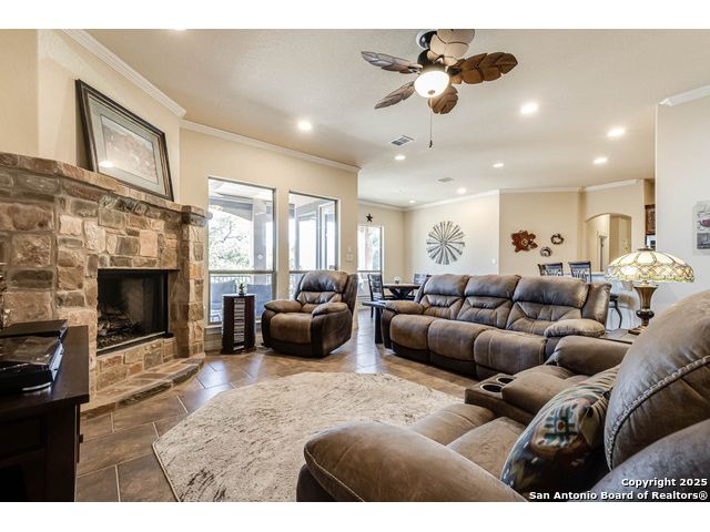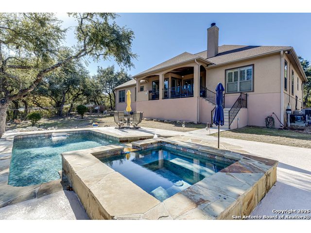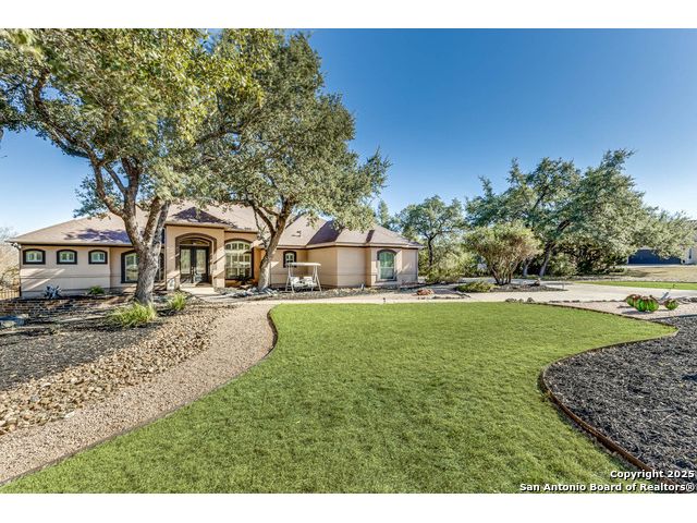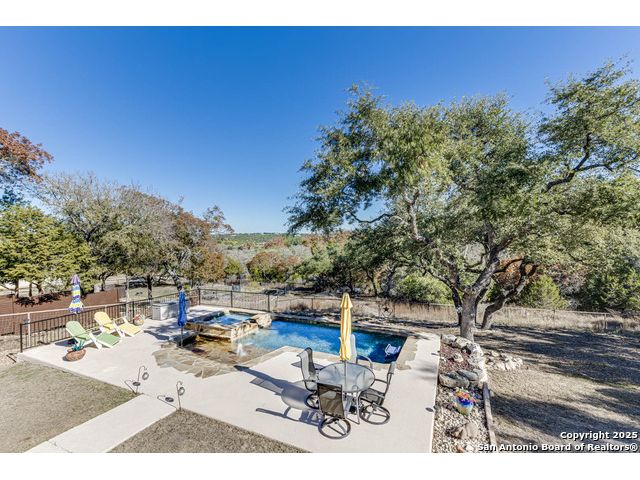 Wow! Take a look at this beautiful 4 bedroom 3 bath home on acreage with a pool and hot tub. This home is stunning and move in ready. Chef's kitchen with gas cooktop, custom cabinets, built in oven and microwave, granite counters even has a wine fridge! The Beautiful Open floor plan overlooks the living room with fireplace. Lots of windows to bring the natural light in. Wait till you see the back of the home has an outdoor kitchen on the private patio that overlooks the beautiful hill country and pool area. This home has so many extras, the pool has a variable speed swim/exercise system, leaf guard gutters around the home, wood floors, beautiful landscaping and so much more. Come see this Beauty today! This is a home you will love for years to come!
