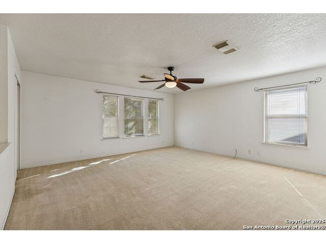 Awesome two-story home in Caracol Heights. Huge master bedroom with 12 x 12 side room that would be perfect for a sitting room, office, exercise area, or nursery. Two living areas plus formal dining room. Also features large master bathroom with his/hers vanity areas. Kitchen features ample cabinet space and granite countertops. Washer and dryer. Brand New Water softener. Awesome yard with tiled covered patio, backs up to greenbelt!