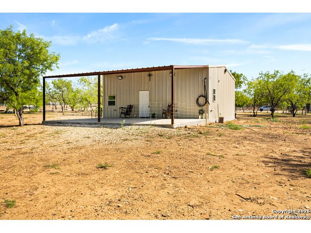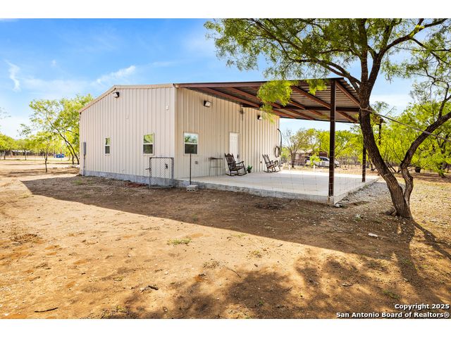 Charming & Cozy 2-Bed, 2-Bath Barndominium on 1+ Acre Near Devine, TX - No HOA! Enjoy peaceful country living in this cozy approx 900 sq. ft. barndominium, featuring 2 bedrooms and 2 bathrooms on just over an acre of land. Nestled on a quiet cul-de-sac just south of San Antonio near Devine, TX, this home offers privacy, space, and freedom-with no HOA and no deed restrictions! The property is fully fenced and features a large private gate off the main street, offering security and seclusion. Relax or entertain on the spacious covered back patio, while taking in the beautiful views of the open farm/field behind the home. All of this, while still being less than 45 minutes from Downtown San Antonio! Don't miss out on this rare find-schedule your showing today!