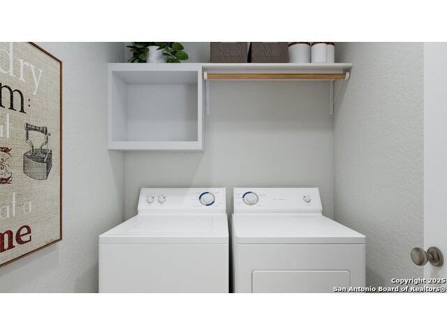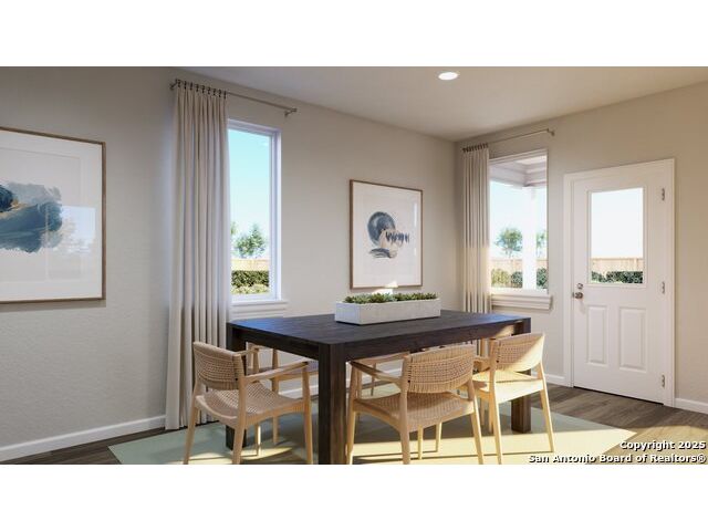 Love where you live in Melissa Ranch in San Antonio, TX! The Rockhampton floor plan is a spacious 2-story home with 3 bedrooms, 2.5 baths, and 2-car garage. The first floor offers the perfect space for entertaining with vinyl plank flooring and a large kitchen island open to both the living and dining areas! The gourmet kitchen is sure to please with 42" cabinetry, granite countertops, and stainless-steel appliances! Upstairs offers a split floor plan and private retreat for all bedrooms! Retreat to the Owner's Suite featuring double sinks with granite countertops, a sizable shower, and a walk-in closet. Enjoy the great outdoors with a covered patio! Don't miss your opportunity to call Melissa Ranch home, schedule a visit today!