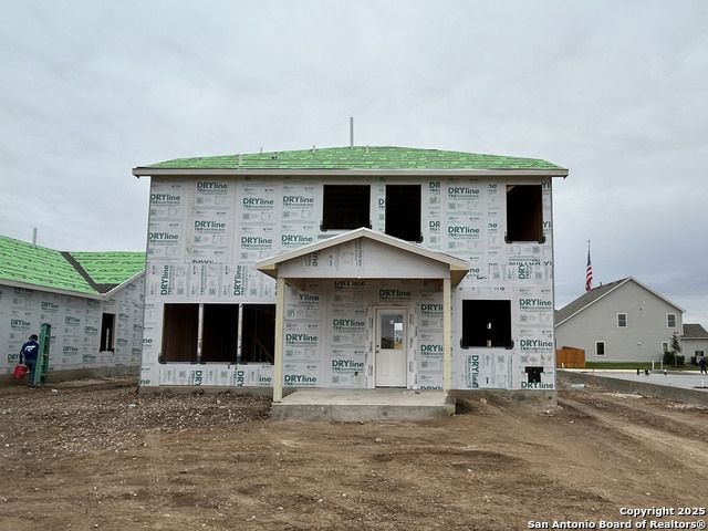 This spacious two story home offers a thoughtful layout designed for comfort and everyday living. At the heart of the home, the gourmet kitchen features an island, walk in pantry, built in oven, cooktop, microwave, and two eating areas, all flowing into an open living and dining space ideal for gatherings. A private study adds flexibility for work or quiet focus. Upstairs, the primary suite includes a garden tub, separate shower, and double vanity, along with a walk in closet. A loft and three secondary bedrooms provide additional living space for relaxation and privacy. Enjoy outdoor living on the covered and extended covered patios, complete with a privacy fence and room to unwind. Additional features include vinyl and carpet flooring, open rail detailing, pendant lighting, vent fans, and plumbing for a water softener. A spacious three car garage completes this inviting home. This home is part of our Oxford Collection - where timeless finishes and rich cabinets meet bright floors and balanced lines. Oxford blends relaxed elegance with enduring style, creating a space for laughter, traditions, and meaningful moments from day one. This home is in Hennersby Hollow, with easy access to Hwy 90, Jungman Rd., major employers, SeaWorld, shopping, and top Medina Valley ISD schools. Community amenities include a pool, lazy river, playground, and activity lawn.