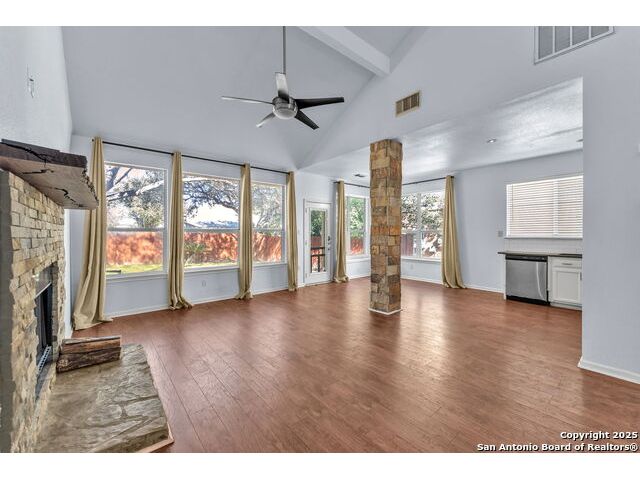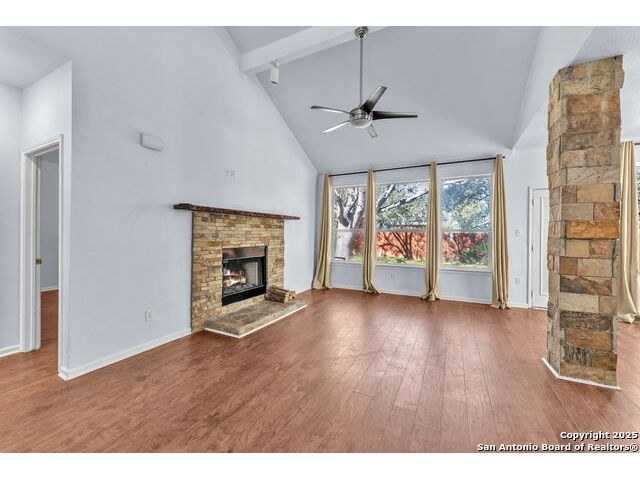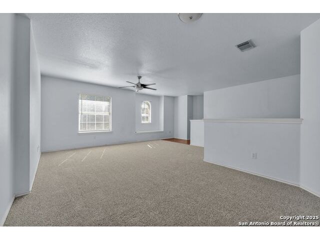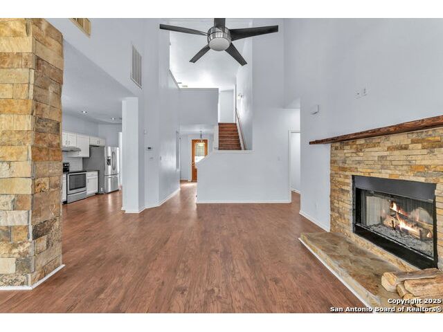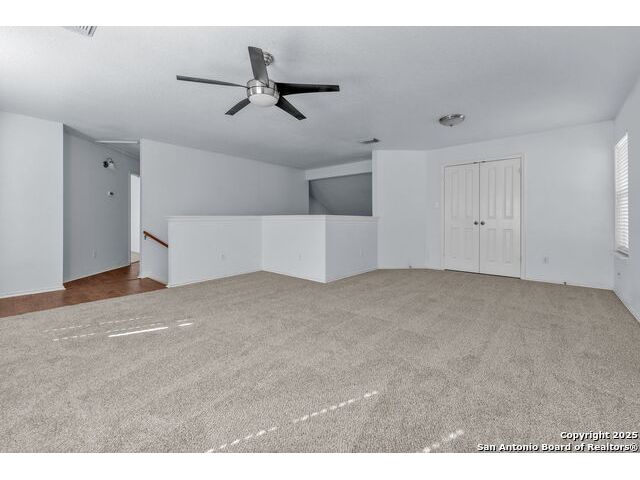Welcome to the Fall Creek subdivision and this home at 3027 Fall Mist. As you pull up to the home you are met with lower maintenance front yard, which has been xeriscaped. Enter in and you have an open floor plan, loads of windows to let the outdoors in, soaring ceiling @ living area, plus much more. The kitchen is open to both the formal dining and breakfast area. Additionally there is solid surface counter tops, lots of counter space, and ceramic tile backsplash. Around the corner is the living room with a stone fireplace to warm you on those cold winter days. The primary bedroom with ensuite is located on the 1st level with a window seat which could make for a great reading spot. The primary bath has a walk in shower, a separate soaking tub, plenty of countertop space to get ready in the mornings, walk in closet plus a linen closet. As you head upstairs you have another large living space, 2 additional bedrooms, bathroom, and new carpeting (Dec 25). If you are more of an outdoor entertainer you have a good sized deck and yard space. This home is situated in a culdesac with a playground/picnic area within a short distance. If you are an avid hiker or biker then you will enjoy the nearby Mud Creek Park with approximately 3 miles of unpaved trails. Additionally you have McAllister park available to you as well and is just about 2 miles away from this home. The Fall Creek subdivision is located just a few miles away from retail shops, grocery store, restaurants, highways, as well as entertainment. If you travel for work, or pleasure, then you are just 7+ miles away from the San Antonio airport. With so much to offer, schedule your showing and make this home yours now!
