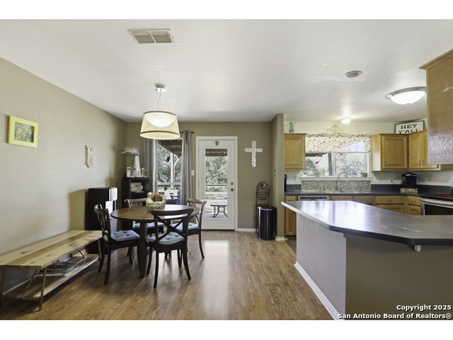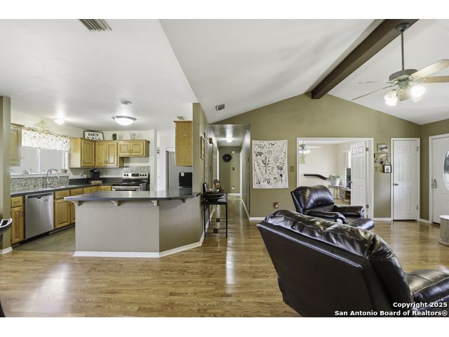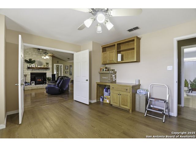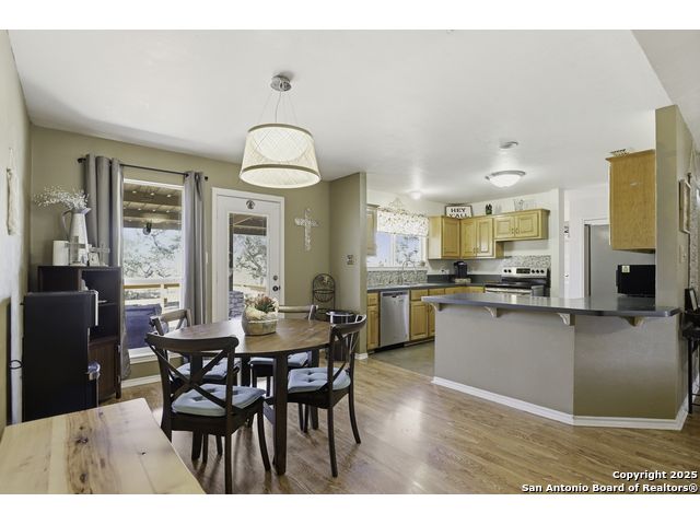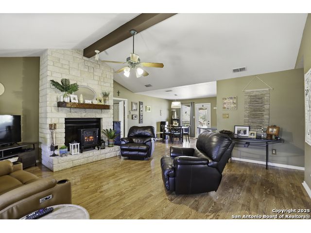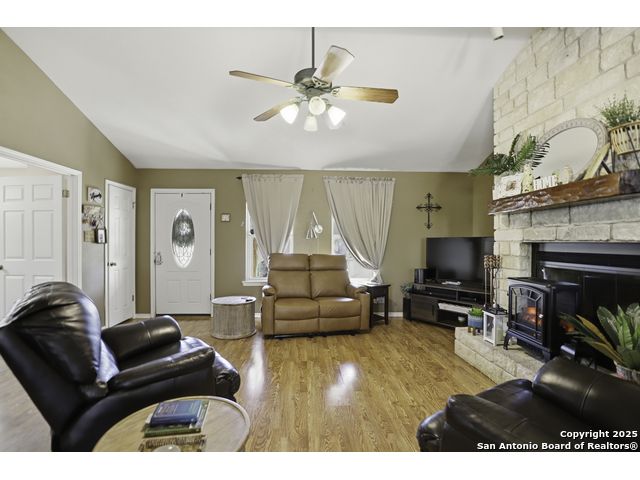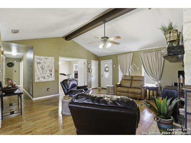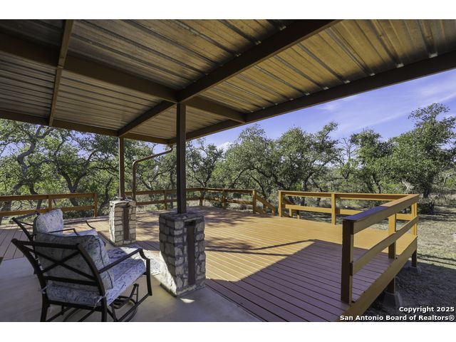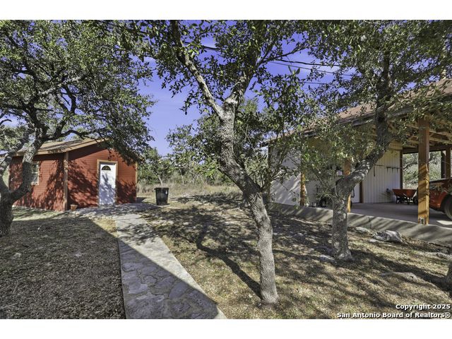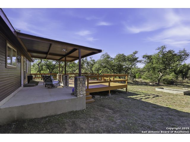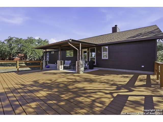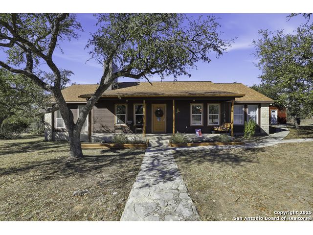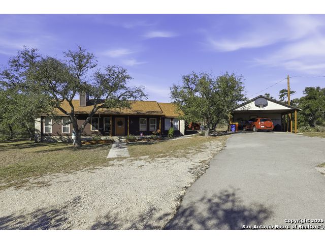 Hill Country living at its finest! Tucked away at the end of a quiet cul-de-sac on 5.4 peaceful acres, this charming single-story ranch home offers privacy, expansive outdoor living, and the kind of natural setting buyers dream of. Surrounded by mature oaks and wide-open skies, this property is perfect for anyone seeking space, serenity, and the freedom of country life - all while being just minutes from San Marcos amenities. Step inside to a warm, inviting interior featuring a spacious living room with vaulted ceilings, a beautiful stone fireplace, and plenty of natural light. The kitchen offers ample cabinet storage, stainless appliances, and a functional layout for everyday living and entertaining. This flexible floorplan includes 3 bedrooms plus a dedicated office or optional 4th bedroom, giving you the versatility to work from home, host guests, or create a hobby or media room. Out back, you'll fall in love with the massive deck overlooking the oak-covered acreage. Whether it's morning coffee, evening sunsets, or weekend gatherings, this outdoor space is truly a retreat. Beyond the main home, the property includes a 1212 studio building with power and water - perfect for a home office, art studio, workshop, craft room, or quiet getaway space. There's also an oversized covered carport with storage, ideal for trucks, equipment, recreational vehicles, or ranch gear. With room to roam, space to expand, and all the peacefulness of the Hill Country, this property offers a rare combination of privacy and practicality. Bring your vision and make this incredible property your own.