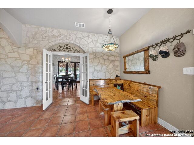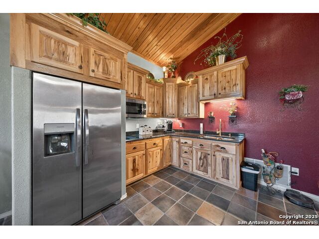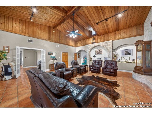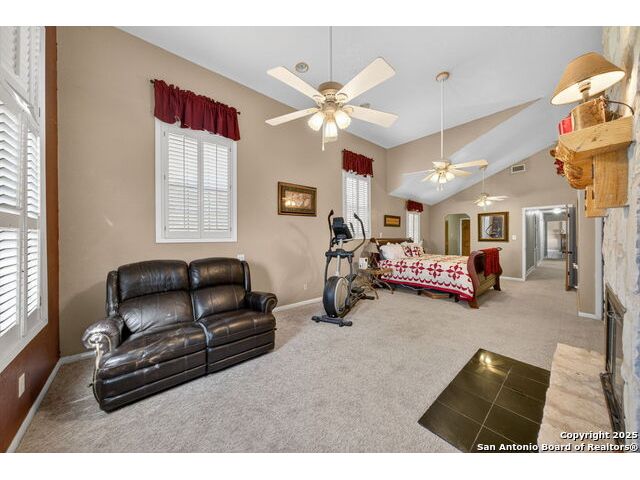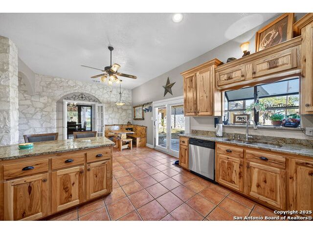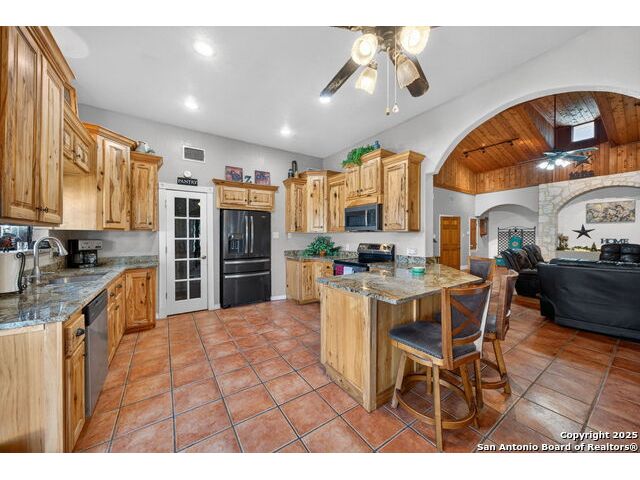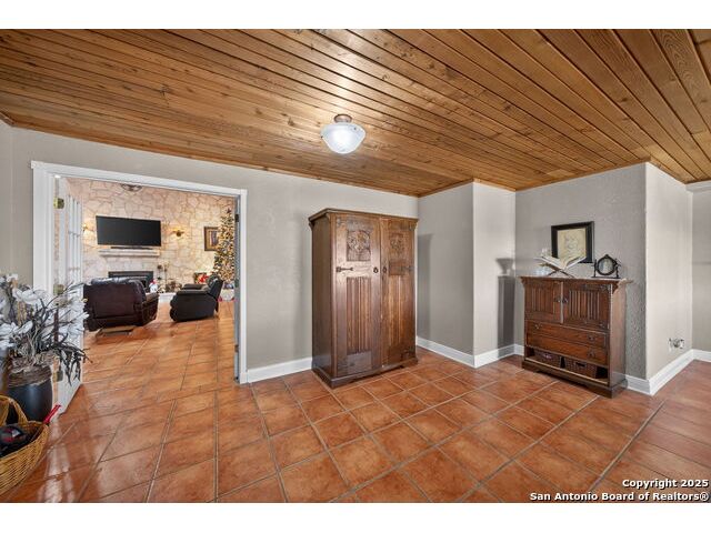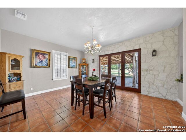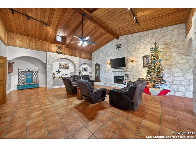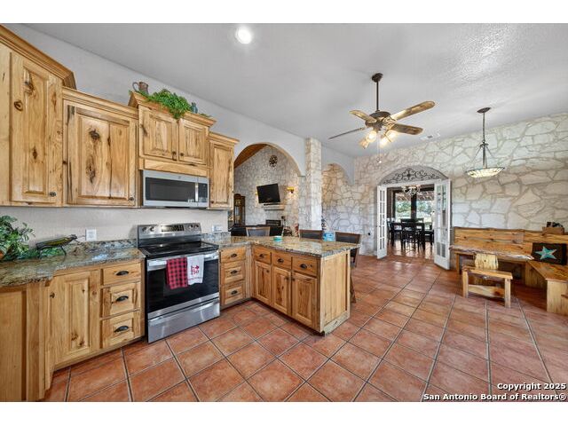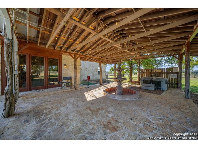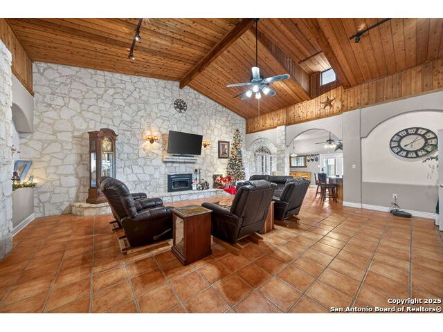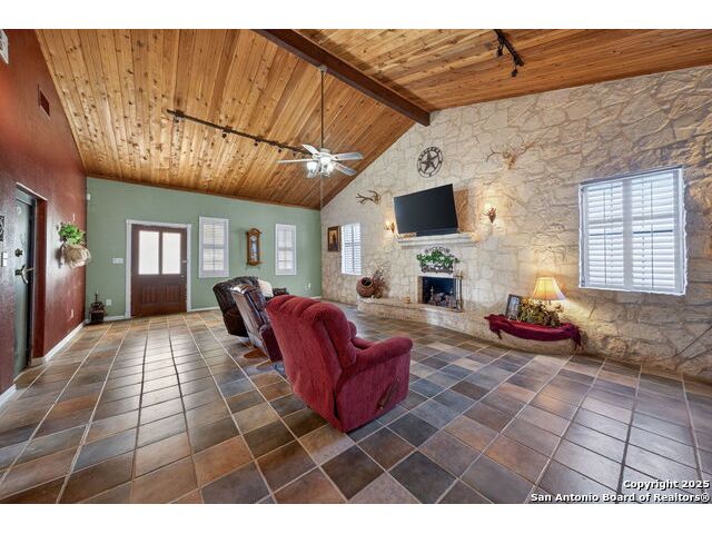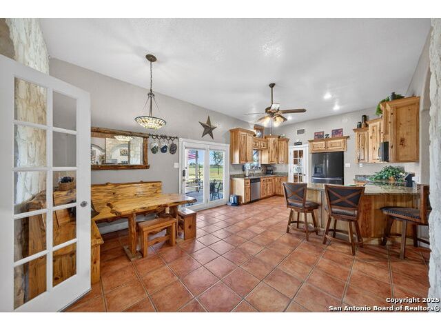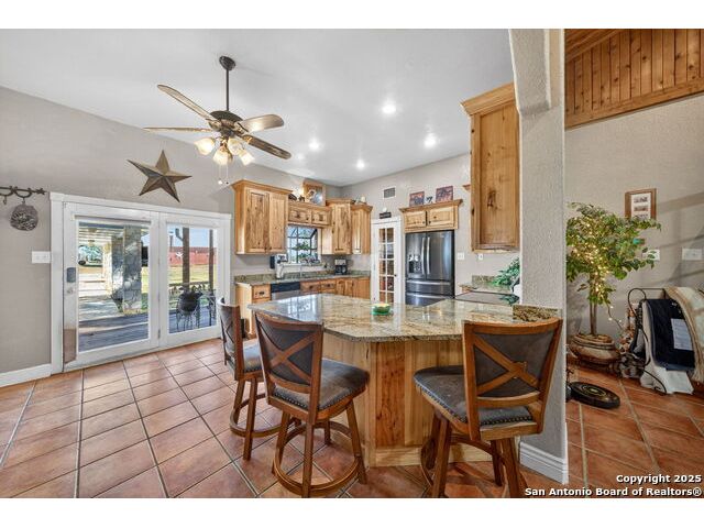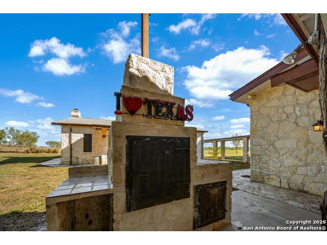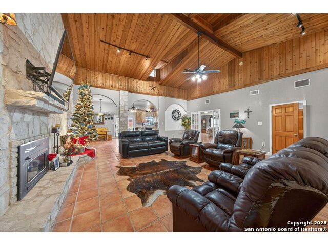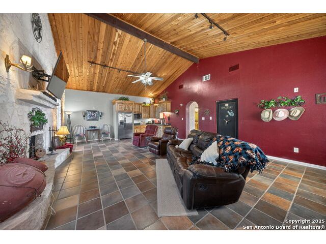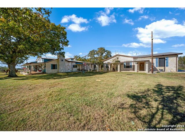 This lovely property features a 4-bedroom, 3-bath home with rustic pecan custom cabinets throughout, including both dual primary suites. The main primary suite includes a fireplace, a comfortable sitting area, and a large walk-in cedar closet.The kitchen offers rustic pecan custom cabinetry, a walk-in butler's pantry, a breakfast bar, and an eating area. Additional living spaces include a separate dining room and two living areas-each with its own fireplace. Step out back onto the large covered patio, perfect for relaxing or entertaining. The property also includes a well-appointed guest house featuring 1 bedroom, a full kitchen, laundry room, large living room with a fireplace, and a spacious walk-in safe-ideal for guests, rental income, or Airbnb. A large barn and beautiful mature Pecan trees complete the setting. You can enjoy this property inside and out. Come take a look for yourself; there is plenty more to see.