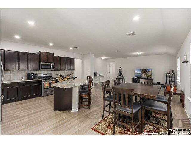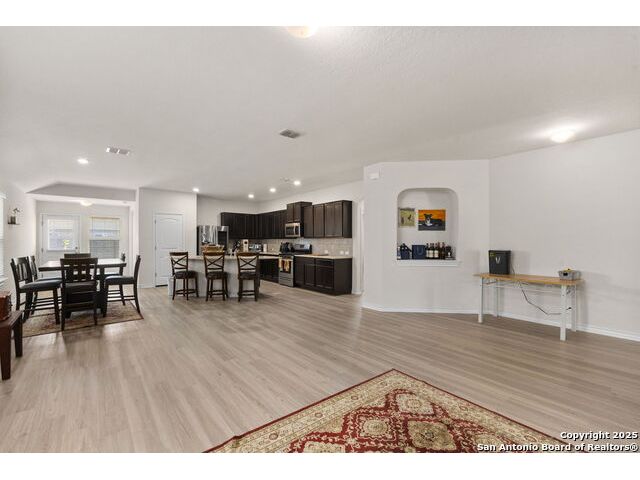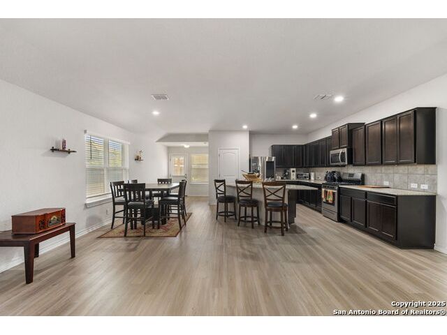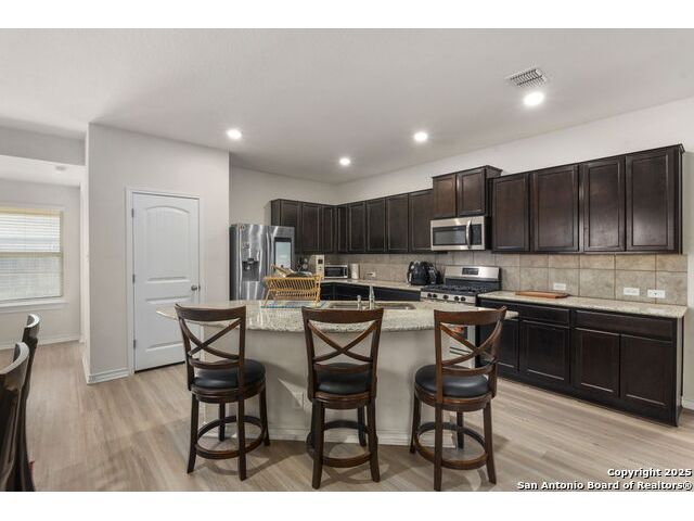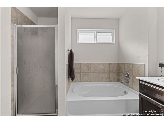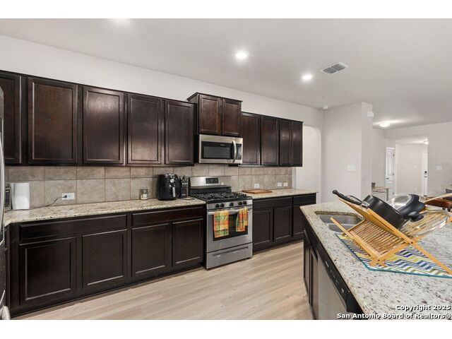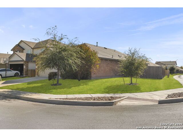 Welcome to this beautifully maintained 4-bedroom, 3-bath home located in the desirable Valley Ranch community of San Antonio, TX. Situated on a spacious corner lot, this open-concept gem is perfect for modern living and entertaining. As you enter, you'll be greeted by a light-filled, open floor plan that seamlessly connects the living, dining, and kitchen areas. The kitchen boasts granite countertops, gas cooking, and plenty of storage space, making it an ideal space for both everyday living and hosting guests. The Primary suite offers a private retreat with a luxurious en-suite bath, featuring a large walk-in shower, Garden tub, double vanity, and generous closet space. Three additional bedrooms provide ample space for family, guests, or a home office. Step outside to the corner lot, where you'll find a fully fenced yard, offering privacy and plenty of room for outdoor activities. Whether you're enjoying the sun on the patio or not. You'll the great amenities of this community to include: Fitness Ctr, Outdoor Paviion, Basket & tennis courts, playground and the amazing resort style with water slides.