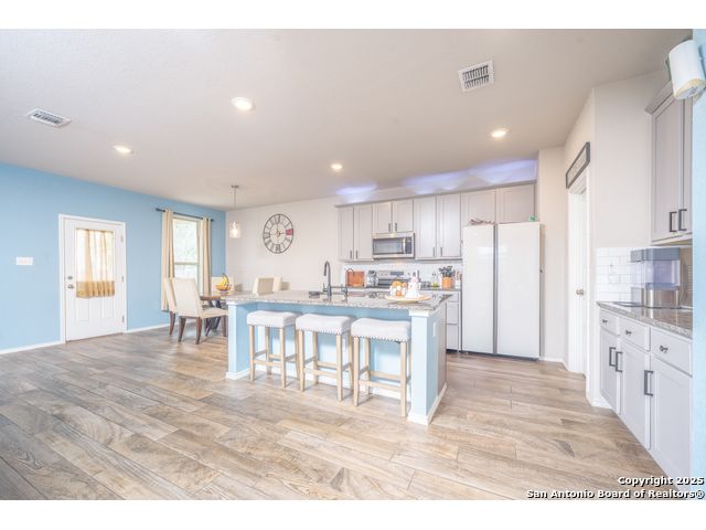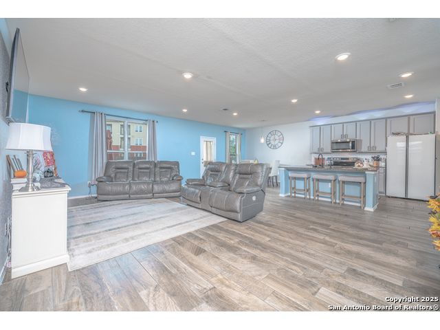 Beautifully maintained home featuring a spacious open layout filled with natural light. The kitchen includes ample cabinetry, large countertops, and a dining bar overlooking the living room. Rare main-floor full suite with its own bedroom and bathroom-perfect for guests, extended family, or a private office. Upstairs, the primary suite offers a generous layout, shower, and large walk-in closet. Multiple living areas provide plenty of space to relax and entertain. The backyard includes a well-maintained lawn and covered patio ideal for outdoor living. A perfect blend of space, comfort, and efficiency-come see it today!