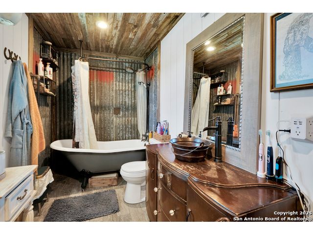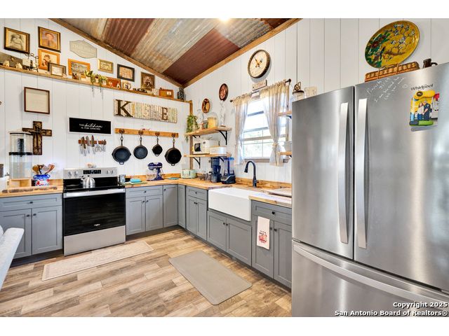Imagine waking up to wide-open Texas skies and the freedom of 4.5 acres in the sought-after Woodcreek community. This estate offers not just one, but two incredible living spaces: a 2,300 sq. ft. single-level home designed with an airy, open floor plan, and a brand-new 1,000 sq. ft. barndominium built in 2024. Together, they create endless opportunities for multi-generational living, guest accommodations, or even rental income. Inside the main home, you'll find four spacious bedrooms and two full bathrooms, with the living, dining, and kitchen areas flowing seamlessly for both entertaining and everyday comfort. The kitchen stands out with butcher block countertops, abundant cabinetry, and modern finishes that make it both stylish and functional. The primary suite offers a private retreat, while the additional bedrooms provide flexibility for family, guests, or a home office. The barndominium adds a modern edge to the property, perfect for creative pursuits, extended stays, or a dedicated workspace. Outside, the land invites you to dream big-whether it's gardening, raising livestock, or simply enjoying the peace and privacy of country living. With room to expand and space to breathe, this property is more than a home; it's a lifestyle. Schedule your private showing today and see how this Woodcreek gem can bring your vision to life.