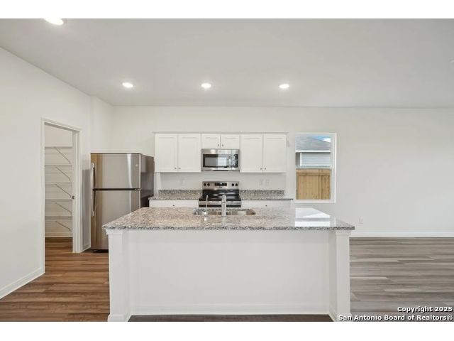 Located in Sutton Farms conveniently located 20 minutes from downtown San Antonio this community offers green space and parks for the family. Discover the elegance and comfort of the Barnard floor plan by Starlight Homes. This thoughtfully designed layout features 3 spacious bedrooms and 2.5 bathrooms, all on 1804 square feet. This 2 story home with an open-concept living area seamlessly blends the kitchen, dining, and living spaces, creating an inviting atmosphere for entertaining and everyday living. The gourmet kitchen boasts stainless steel appliances, ample counter space made from granite, island/breakfast bar, walk in pantry. The master suite offers a private retreat with a luxurious en-suite bathroom and a generous walk-in closet. Additional highlights include a loft area, 1-car garage, energy-efficient features, and stylish finishes throughout. Experience the perfect blend of style and functionality.