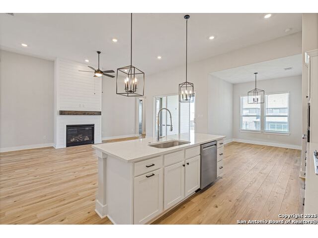 Located within the unparalleled community of Potranco West is the single-story Chester plan. This home features three bedrooms, two bathrooms, providing all the space your household needs to live comfortably. In addition to the generously sized secondary bedrooms and secluded master retreat, the Chester boasts an incredibly open layout with a spacious living room, fully equipped kitchen, dining area, additional flex room, and more. The kitchen is sure to be a talking point with stunning white cabinetry, a large granite island, and stainless steel appliances. The Chester plan offers you an opportunity for extraordinary living.