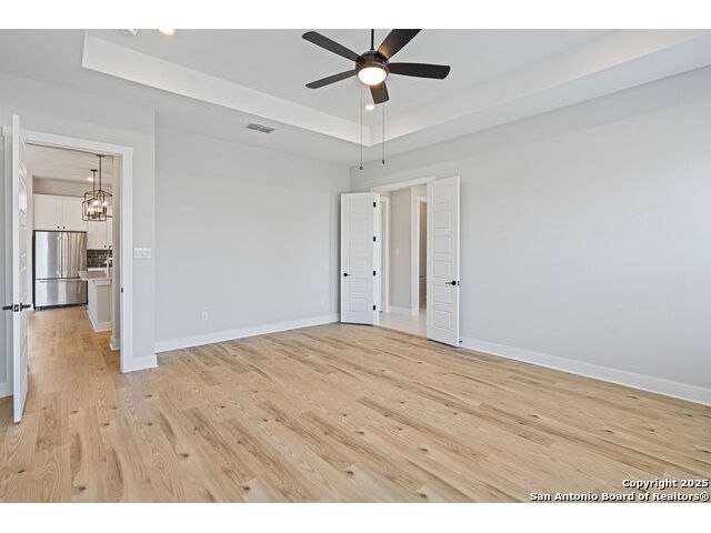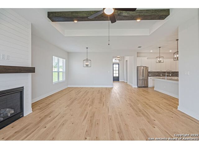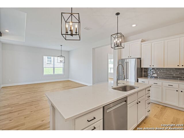 The Hanna plan is an inviting, single-story home within the highly sought-after Potranco West community. As you walk through the front door, you are greeted by the foyer, leading into the expansive living area, complete with a designer kitchen, large living room with a fireplace, and sliding doors leading to the covered back patio. With three bedrooms, including the luxurious master suite, and three full baths, space is never an issue inside the Hanna floor plan. An additional flex space offers you an area to convert into an office, formal dining room, or anything else your heart desires.