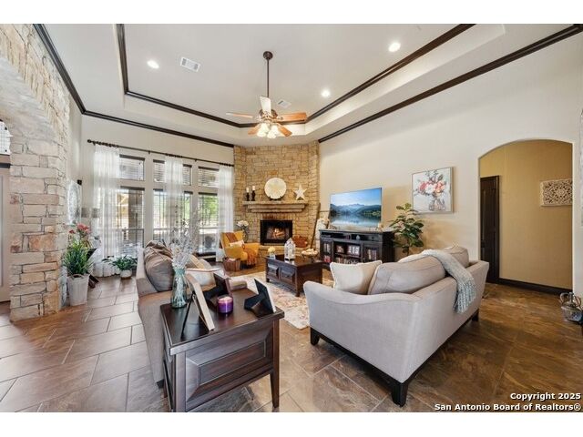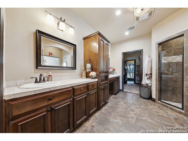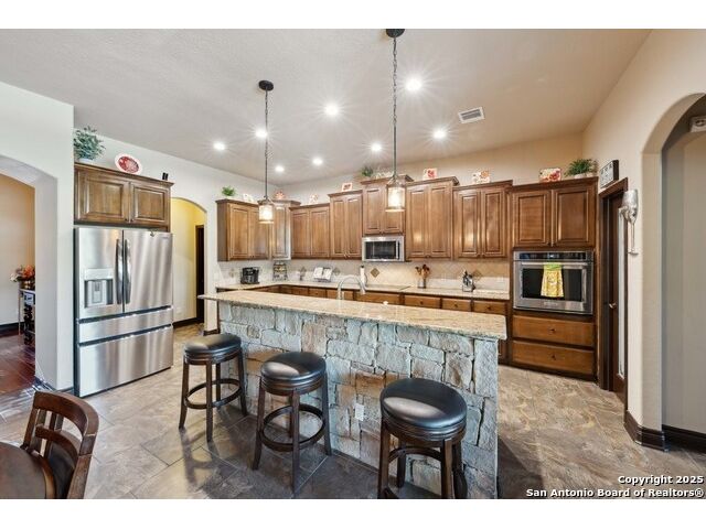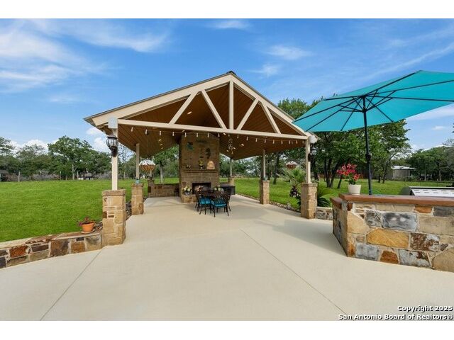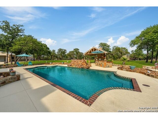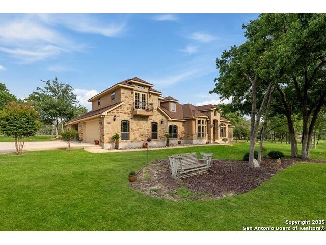 5.3 Acres! Located just 114 miles from Corpus Christi and approximately 29 miles from San Antonio, this rare 5-acre estate offers the perfect blend of luxury and peaceful small-town living. This stunning 5-bedroom, 5-bath custom stone home features timeless curb appeal, a full stone exterior, and a long gated driveway leading to one of the area's most desirable settings. Inside, you'll find generous living spaces and versatile bedrooms, including a fifth suite ideal for maid's quarters or private guest accommodations. Outdoors, enjoy a sparkling pool with cabana and bathroom, an outdoor grill area, and a sand volleyball court for endless entertainment. Equestrians and hobbyists will appreciate the horse stables, double-door workshop, and private water well for irrigation. Multiple carports provide abundant covered parking. This property truly offers it all-space, style, and soul. With horse stables, a double-fenced horse corral around the perimeter, a private water well, workshop, swimming pool with cabana and bathroom, plus a new roof installed in 2020, opportunities like this are incredibly rare.