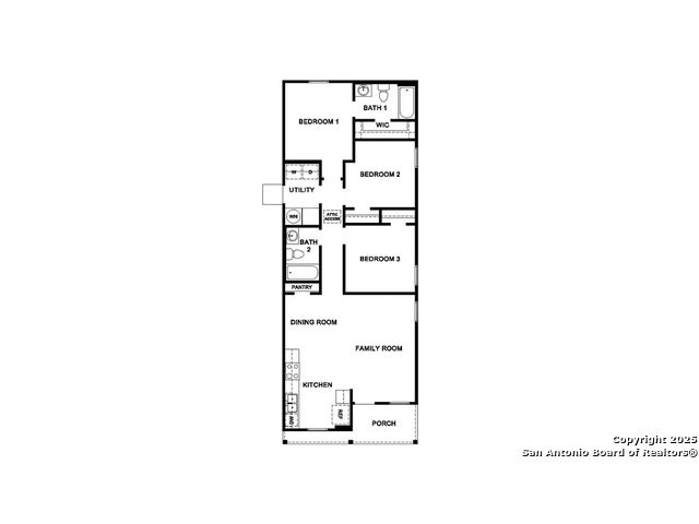 Welcome to The Gabriel, featured at Sonora in San Antonio, TX, an expertly designed 1-story home offering 1002 square feet of comfortable living space. With 3 bedrooms and 2 bathrooms, this home is perfect for families, couples, or individuals seeking additional room to grow. The Gabriel replaces a traditional garage with a spacious driveway, providing ample parking space and added convenience. The home's exterior is available in two attractive elevation options, both crafted with durable, low-maintenance materials that ensure long-lasting beauty. The Gabriel boasts an open concept interior layout that maximizes the available space, creating a seamless flow between the living room, dining area, and kitchen. The kitchen is a standout feature, complete with sleek quartz countertops, stainless steel appliances, and contemporary shaker-style cabinets, providing both style and function. This inviting space is perfect for cooking meals or hosting guests. The main bedroom offers a tranquil retreat with plush carpet flooring and a spacious walk-in closet for all your storage needs. The ensuite bathroom includes a single vanity with a quartz countertop, complemented by a combined shower and bathtub, providing a relaxing oasis at the end of the day. Additional features of The Gabriel include quartz countertops in all bathrooms and hard surface flooring throughout the living room, kitchen, and all wet areas, making cleaning and maintenance a breeze. With its thoughtful design and modern finishes, The Gabriel offers a stylish, low-maintenance living space perfect for those seeking a contemporary home in our Sonora community.