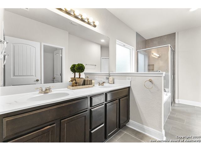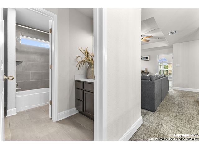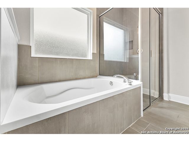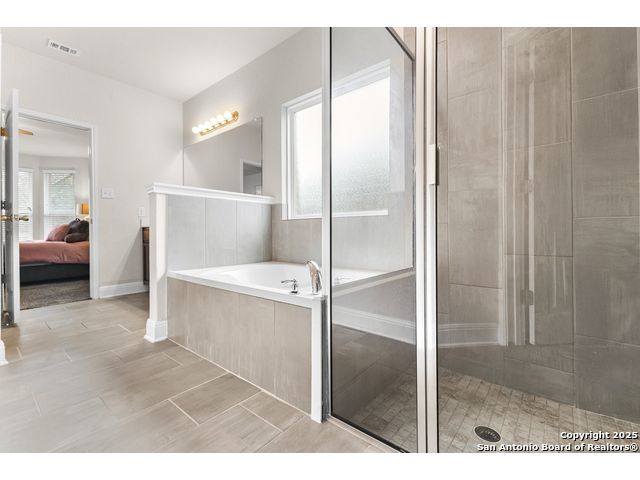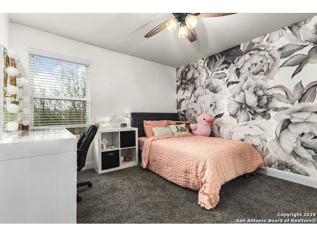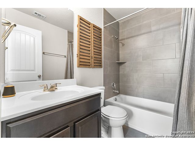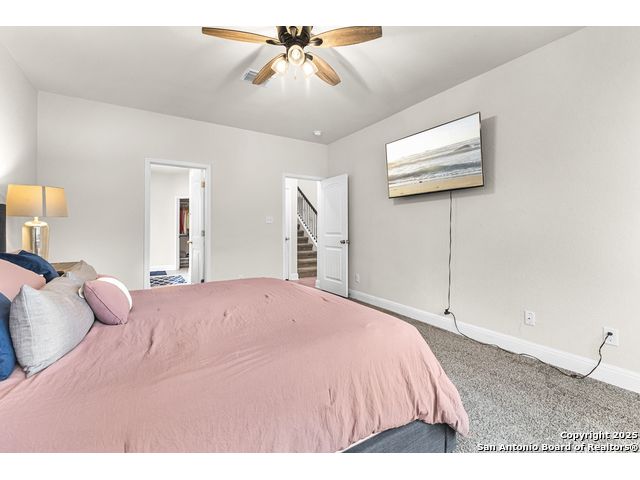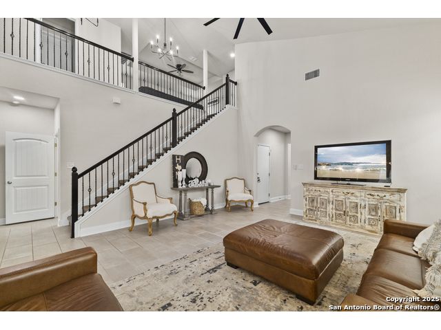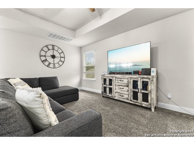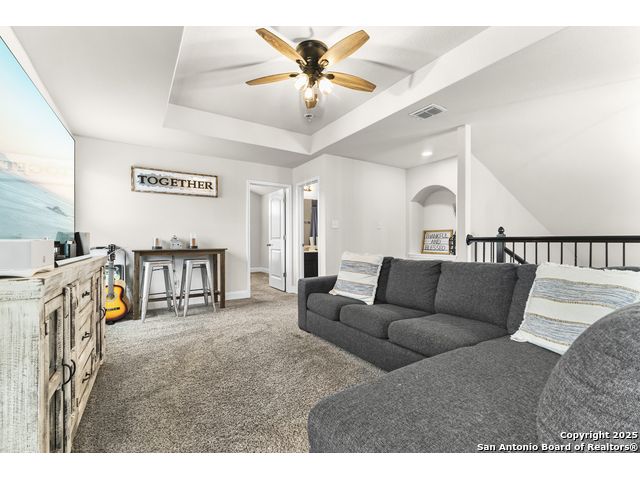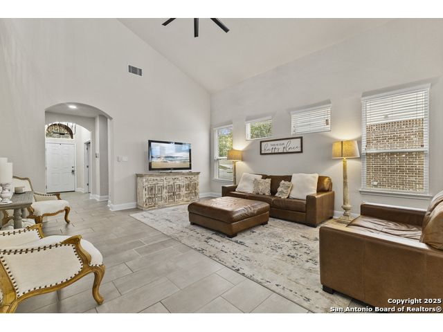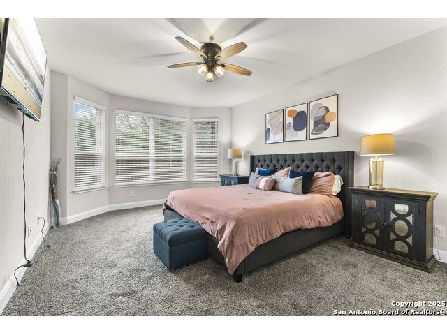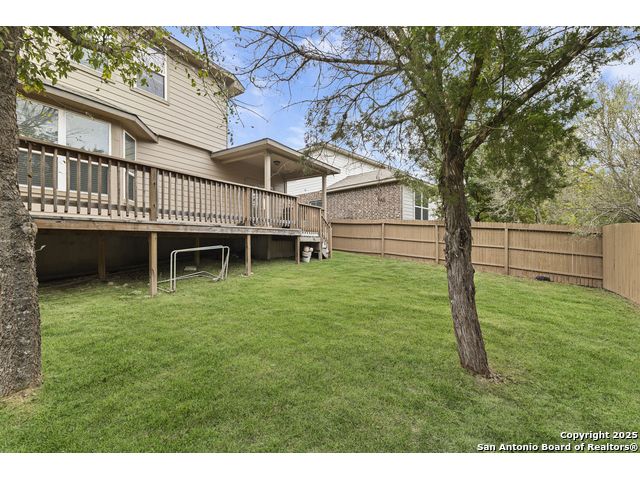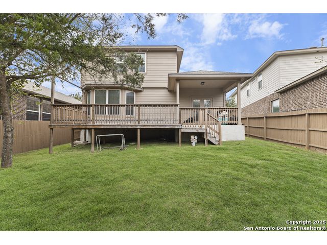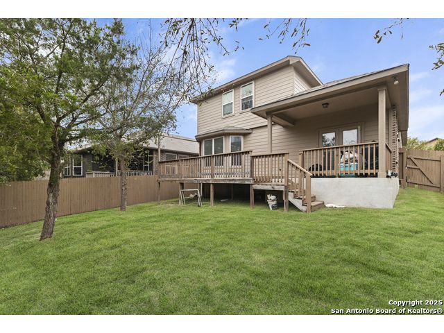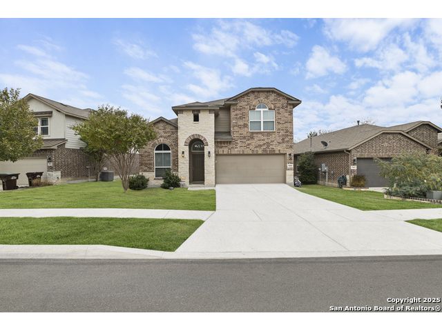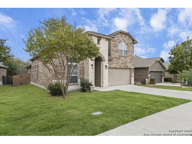 OPEN HOUSE, 12/13/25 from 11:00-2:00PM. ASSUMABLE LOAN at 2.75%. QUALITY-BUILT DR HORTON HOME! This stunning 4 bed, 3.5 bath, 2,998 sq ft home features a spacious living room with soaring 2-story ceilings, an open kitchen/dining area, a dedicated home office, and a covered patio connected to a freshly painted deck, perfect for entertaining. The main-level primary suite boasts a luxurious bath and generous walk-in closet, while upstairs features two bedrooms with a Jack-and-Jill bath and a mother-in-law-type suite separated by a large game room. Enjoy peace of mind and long-term savings with a whole-home generator, solar panels, water softener, and security system-all fully paid off, plus a sprinkler system and radiant barrier. The backyard backs up to a serene greenbelt, offering privacy and tranquility. Conveniently located just 10 minutes from Loop 1604, this home combines style, comfort, and smart features-move-in ready and designed to impress!