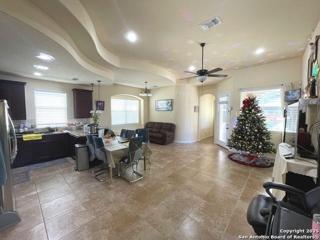 Welcome home to this beautifully single-story home. Features 3 spacious bedrooms, 2 full bathrooms, and an inviting open floor plan that seamlessly blends comfort and style. Step inside to high ceilings and a bright, open-concept layout perfect for everyday living and entertaining. The kitchen stands out with granite countertops, sleek finishes, and a functional design that flows effortlessly into the dining and living areas. The private primary suite is a true retreat, featuring a custom walk-in shower, Double Vanity. Two additional bedrooms offer flexibility for family, guests, or a home office. Enjoy year-round outdoor living with a slab-covered patio overlooking the backyard-ideal for gatherings, grilling, or peaceful relaxation. Don't miss the opportunity to make this stunning single-story property yours!