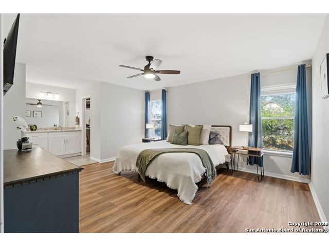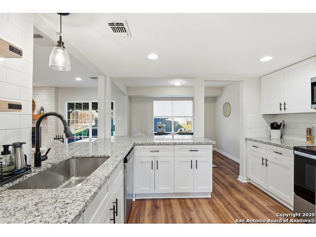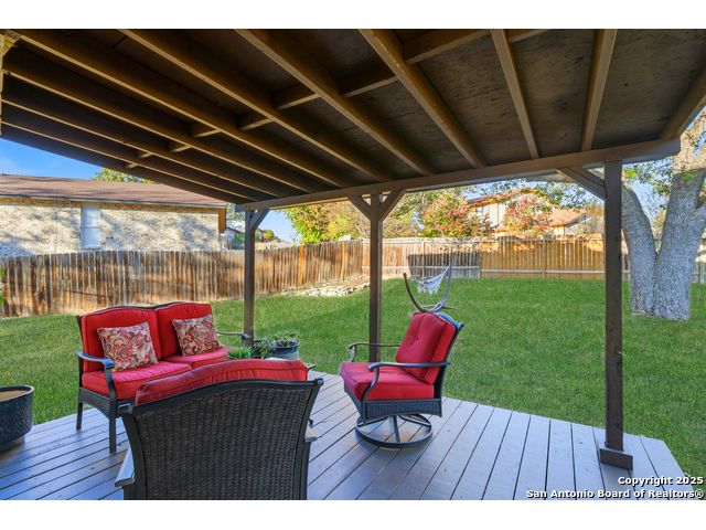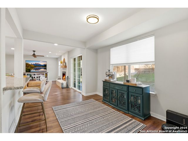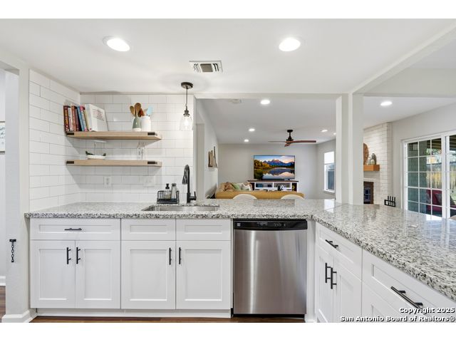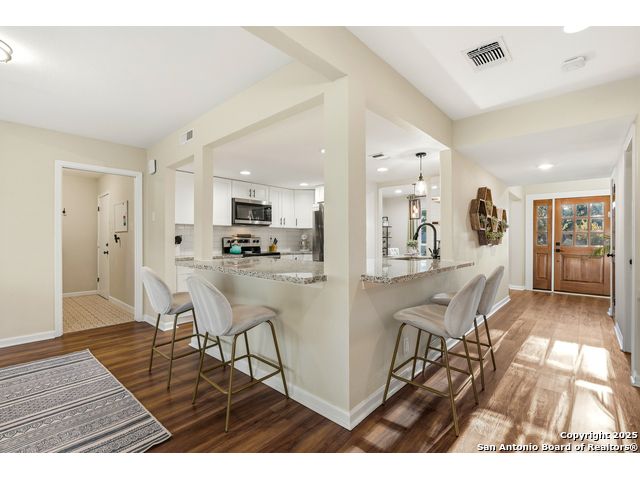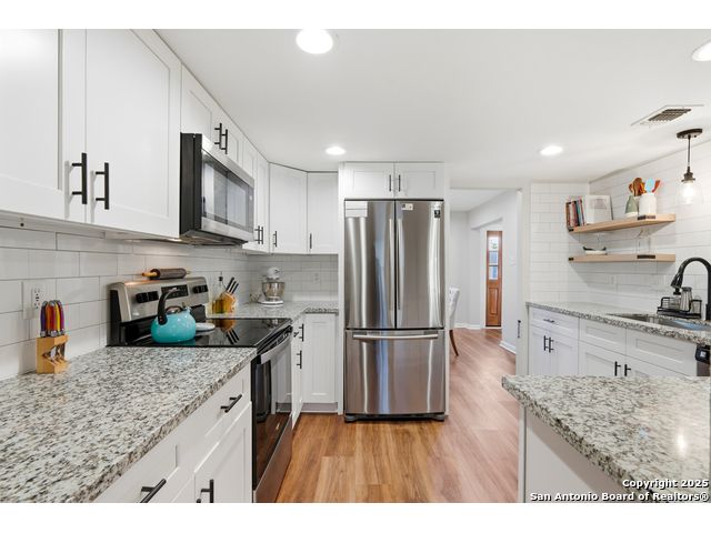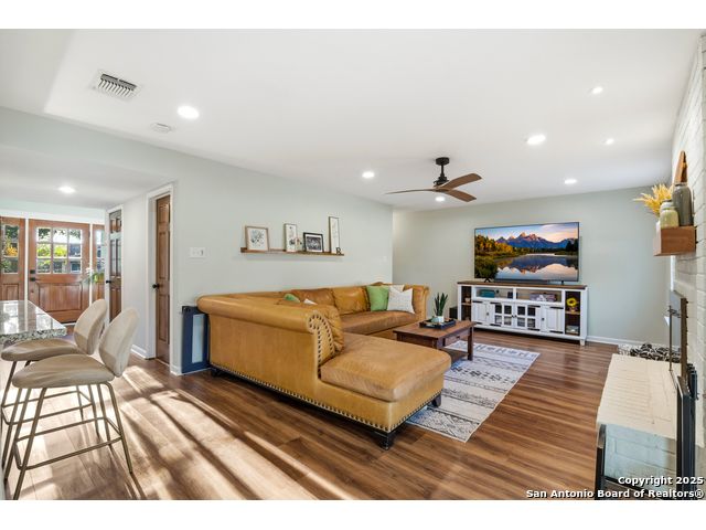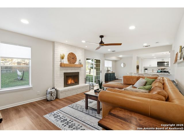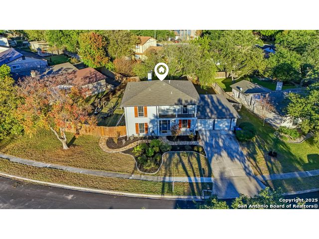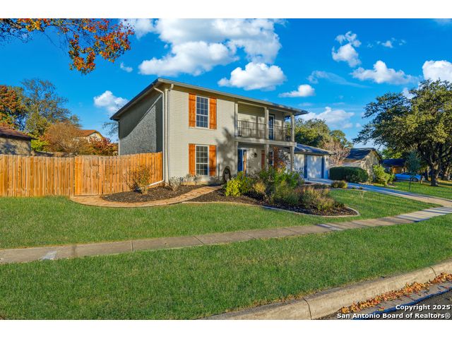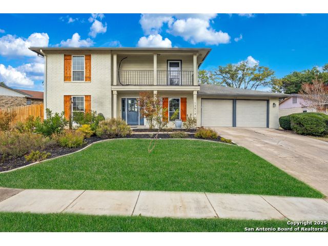 Open House Sat. 13th 1-3pm. This exceptional home has it all, space, comfort, and lifestyle! Come see this stunning two-story, 4-bedroom, 2.5-bath home, on a generous 0.32-acre lot, located in the highly desirable Northern Hills subdivision with No HOA! Featuring excellent curb appeal, the property showcases custom landscaping, mature trees, and a three-sided brick exterior. Step inside to an inviting home filled with natural light which offers two spacious living areas, a formal dining room, and beautiful luxury vinyl flooring throughout. The formal dining room flows seamlessly into a cozy family room with a charming fireplace and open view to the chef's kitchen, complete with granite countertops, white cabinetry, stylish backsplash, stainless steel appliances, and a breakfast nook ideal for everyday living and entertaining. Upstairs, the spacious primary suite features a large bathroom with a tub/shower combo, an oversized vanity, and a walk-in closet. Three additional bedrooms provide versatility for family, guests, or a home office, with access to a lovely balcony. The large backyard has a covered patio perfect for gatherings. Located just minutes from the Northern Hills Golf Course, this home is a dream for golf enthusiasts. It also offers convenient access to Thousand Oaks Dr, Loop 1604, shopping, dining, and the highly rated NEISD school district. It's a must see! This will not last long!
