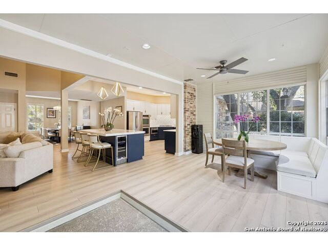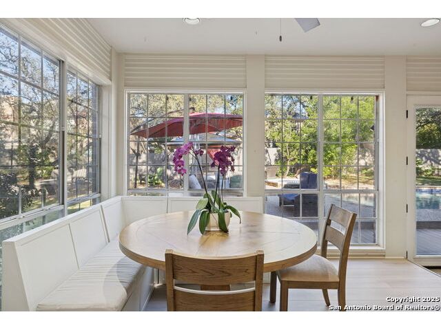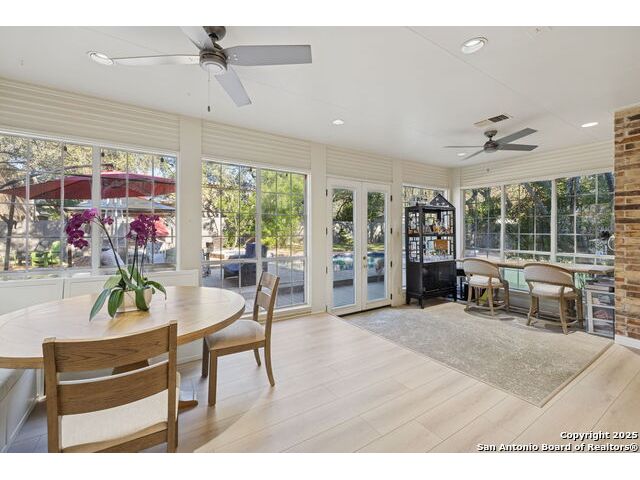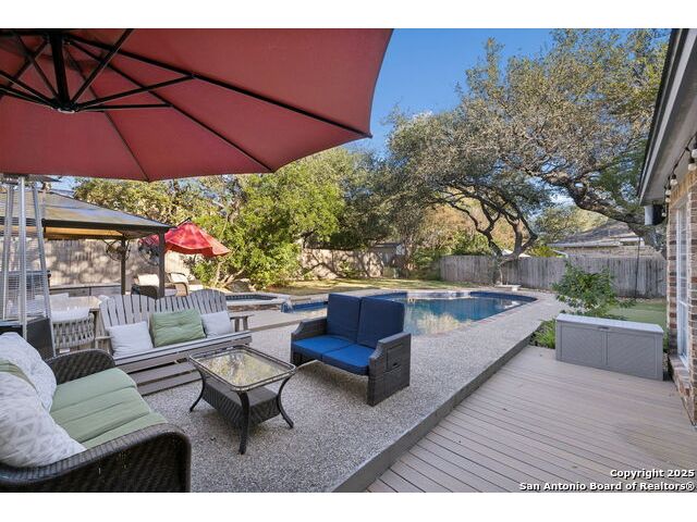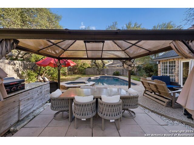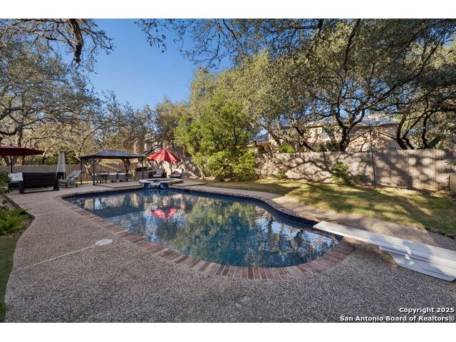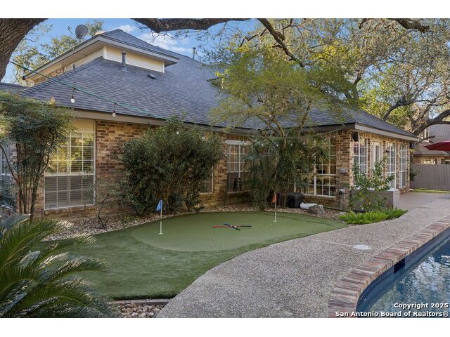 A rare find in Inwood's 24/7 guard-gated community, 10 Rogers wood offers exceptional value under $800,000 in the North Central-area. This residence rests on a tree-shaded lot with a welcoming front lawn and a backyard tucked beneath mature oaks. Inside, the layout provides open living areas, formal dining, a dedicated study, a generous living space with a fireplace and outdoor access, and a beautifully updated island kitchen with Phillips smart lighting and a breakfast area. The downstairs primary suite includes a walk-in closet, and en suite with a soaking tub, separate shower, and dual vanities. The backyard serves as a private retreat with a beautiful pool and spa, putting green and an outdoor living area, ideal for year-round entertaining. Inwood remains one of the most sought-after luxury communities on San Antonio's Northside, celebrated for its guard-gated privacy and private access to the Salado Creek Greenway, where miles of walking trails wind through the landscape. With its location, scale, and potential, this home is ready for thoughtful updates that will transform it into your standout residence. 4 Bed 3.5 Bath 3,204 Sqft .26 Acre Formal dining Private study Pool + Spa Integrated smart appliances