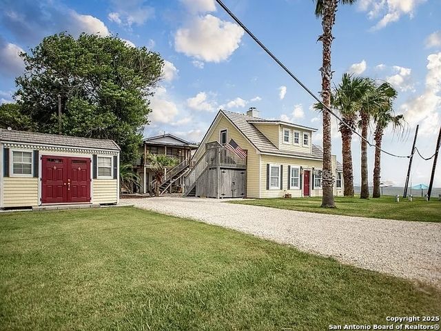 Experience the best of coastal living at this custom-built waterfront home overlooking breathtaking Matagorda Bay. Located in the desirable Magnolia Beach community, this property is built to full Texas Coastal Rules & Codes and has also been a high-performing short-term rental with excellent reviews and repeat guests. Property Highlights Waterfront With Panoramic Bay Views Sunrise, sunset, and wide-open water views from both inside the home and the outdoor living spaces. 3 Bedrooms | 2 Full Bathrooms Comfortable, functional layout ideal for full-time living, weekend getaways, or STR income. Built for Coastal Durability Vinyl roof & siding, tile and hardwood flooring throughout, wood ceilings, ceiling fans, and two fireplaces-one gas, one woodburning. Custom Kitchen All-wood cabinetry, granite countertops, plenty of prep space, and storage. Expansive Family Room French doors from the living room open into a large family room with a stone fireplace and a 16' screened opening featuring an electric hurricane door-perfect for catching the coastal breeze. Outdoor Access & Design Second-floor access via outside stairs, allowing for flexible use and privacy. Engineered Seawall/Bulkhead Includes stairs to the beach for fishing, kayaking, paddleboarding, or relaxing by the water. Low-Maintenance Landscaping Crushed stone around the home and driveway, outdoor seating areas, and a fire pit. Great for entertaining. Storage Building Included Additional space for beach gear, tools, or rental supplies. Short-Term Rental Opportunity: This home has been a successful STR thanks to its unbeatable waterfront location, easy beach access, and coastal charm. Strong income potential for investors seeking a turnkey opportunity. Lifestyle: A peaceful, coastal retreat where you can relax, entertain, fish, and create unforgettable memories. Magnolia Beach is known for its laid-back atmosphere, friendly neighbors, and true Texas Coast beauty.
