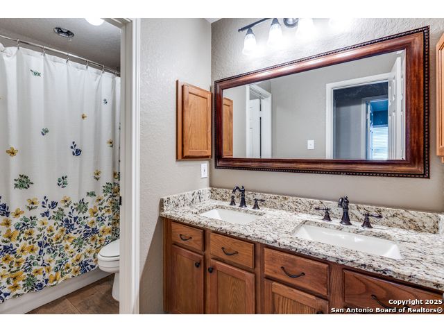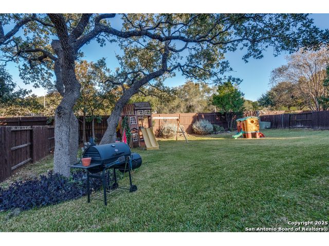 Located in the highly sought-after gated community of The Terraces, this stunning two-story, stone and brick Highland Home offers the perfect blend of comfort, style, and space. Featuring 5 bedrooms, 2 living areas, a formal dining room, and a spacious game room upstairs, this home is designed for modern family living. The gourmet kitchen boasts an oversized center island, breakfast bar, and granite countertops, ideal for both everyday meals and entertaining. Step outside to enjoy a large, covered back deck overlooking a spacious, flat backyard with plenty of room for kids and pets to play. Enjoy neighborhood amenities including a pool, park, and sports court, all within walking distance, plus highly rated NEISD schools just minutes away. Don't miss the opportunity to own this exceptional home! Schedule your private showing today!