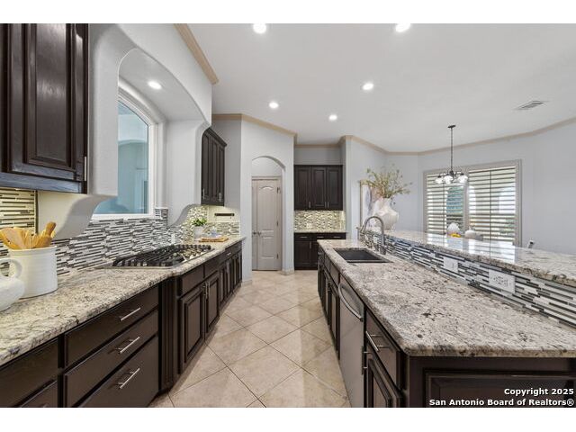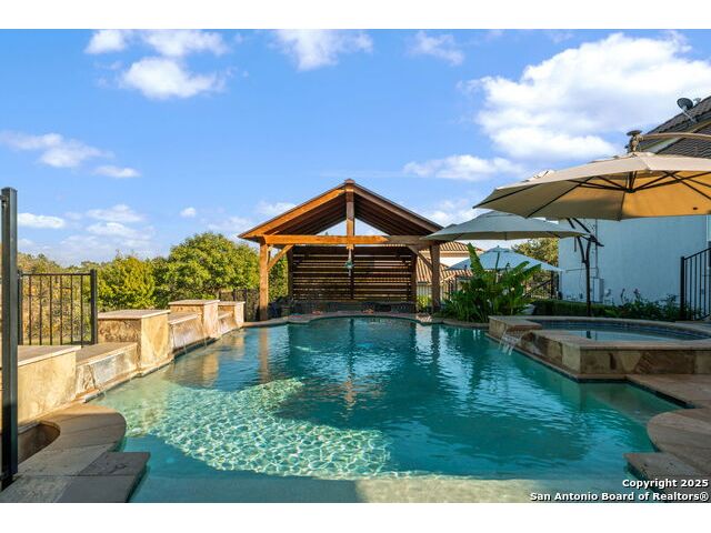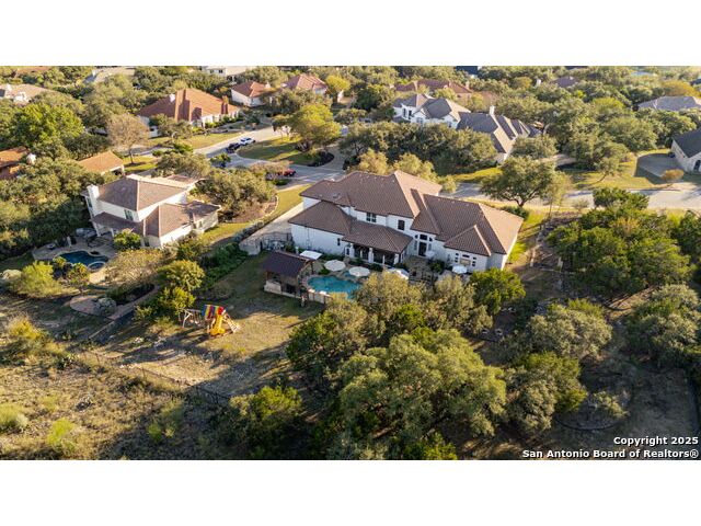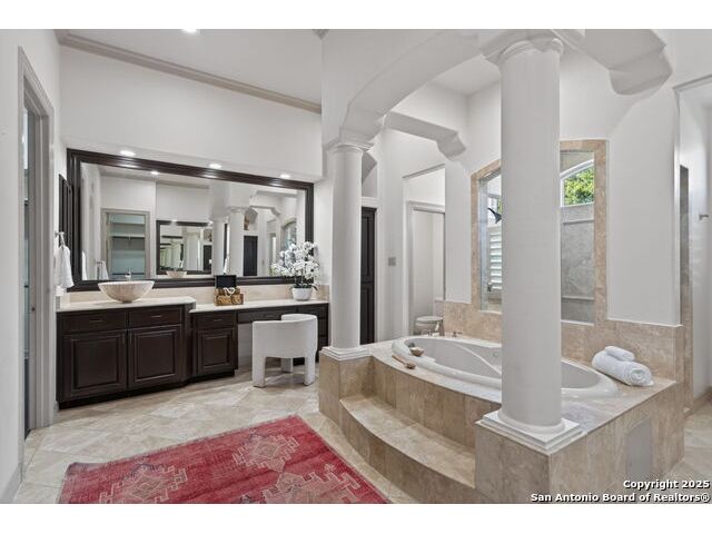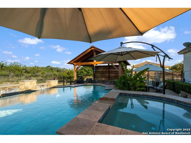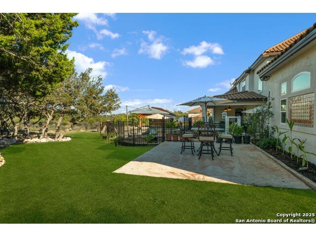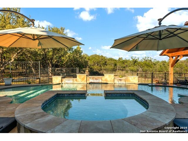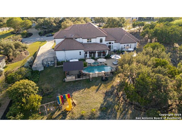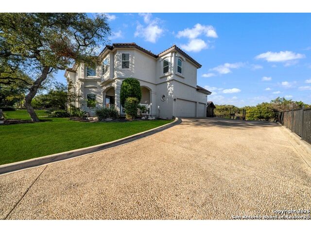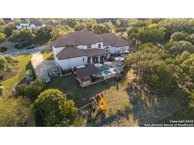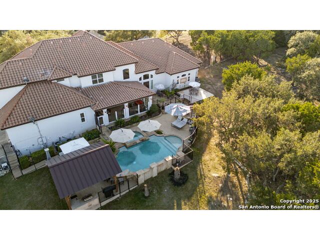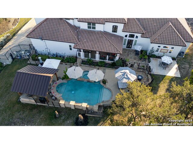 Welcome to this captivating Mediterranean-style estate on a VERY PRIVATE 1-acre lot in the prestigious, gated and guarded Village in the Hills / Big Springs community. The majestic exterior has enjoyed a recent repainting and all the windows have been also been replaced! The roof is beautiful, long-wearing clay tile. Behind the striking custom iron front doors, step into the dramatic two-story foyer. The floors are comprised of an elegant mix of warm wood and large ceramic tiles - both neutral to match any decor and elegant. This home features multiple living spaces, including a living area with a soaring wall of windows, a generous and cozy family room with it's own patio encased in glass walls and a large game room upstairs. The dining room features views of the backyard and French Doors to bring the outside in while dining. After passing the bar area - enjoy a kitchen with miles of granite countertops and stainless appliances for all your gourmet cooking needs. The breakfast and family room are open to the kitchen. Walk down the hallway and find the executive study with its own private patio that adjoins the primary suite. This study (and the primary) both offer a special locking system so that these rooms may be locked while entertaining guests in the home - keeping both work and bedroom safe and sound. The spacious primary suite boasts wood floors, a lovely chandelier and access to the private patio encased in glass walls (great for pets)! The primary spa bath is grand with a large tub and double shower and his and hers vanity areas and closets. Next, ascend the wood and handcrafted wrought iron staircase, and find three sizable bedrooms and game room - all with wood flooring and tile in the baths. The real SHOWSTOPPER is the outdoor oasis! Nearly brand-new Cody pool with sun shelf, many fountains, swim up counter and a spa are inviting along with a large covered patio and THREE other patios and firepit areas! The covered outdoor kitchen is also nearly new offering a long granite countertop, fridge, grill and storage. Seat SIX people at the counter at the edge of the pool/outdoor kitchen. Some can sit in the pool on the built-in stools and other can sit on the patio! (See aerial photo of the swim up bar). The backyard is level and private with trees, a vegetable garden and plenty of room to run and play. The playset can also convey. A three-car, side-load garage with epoxy floor provides ample storage. Shopping and restaurants are in the vicinity, and the airport is only a 12-mile drive. This home is the epitome of privacy, luxury, and convenience in a beautiful and private setting.