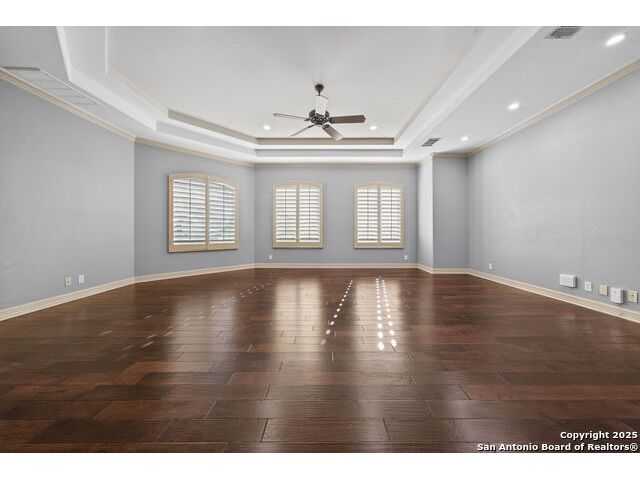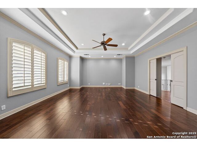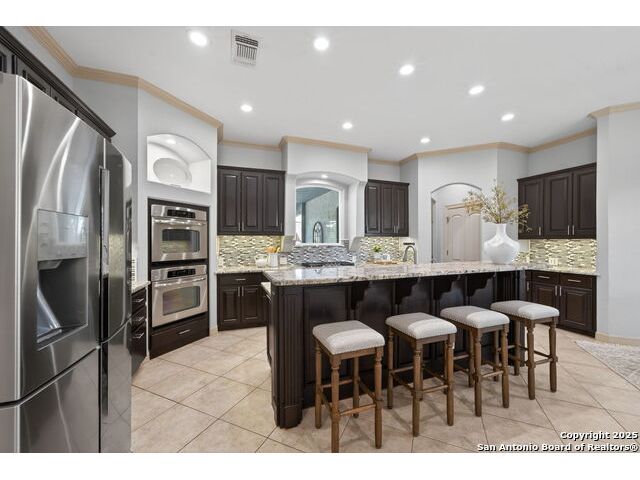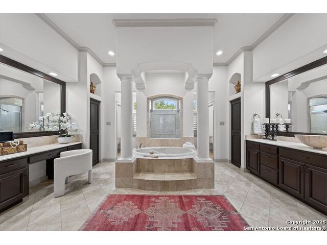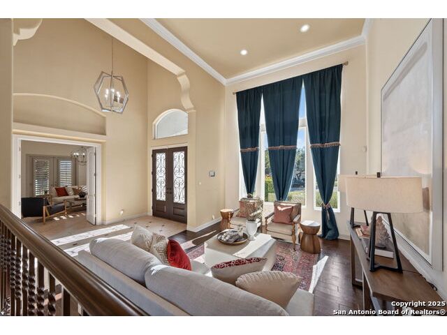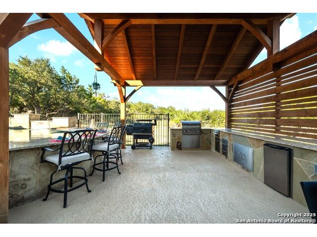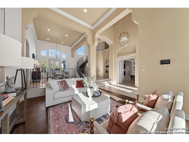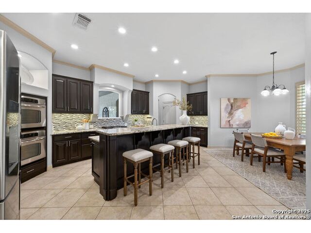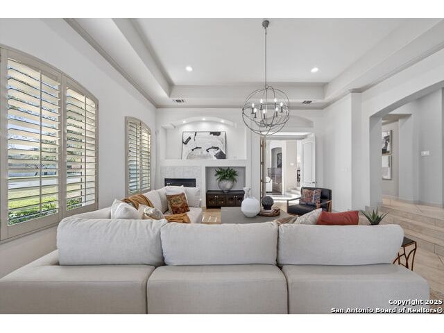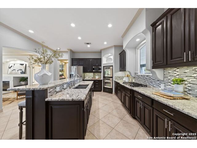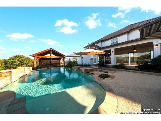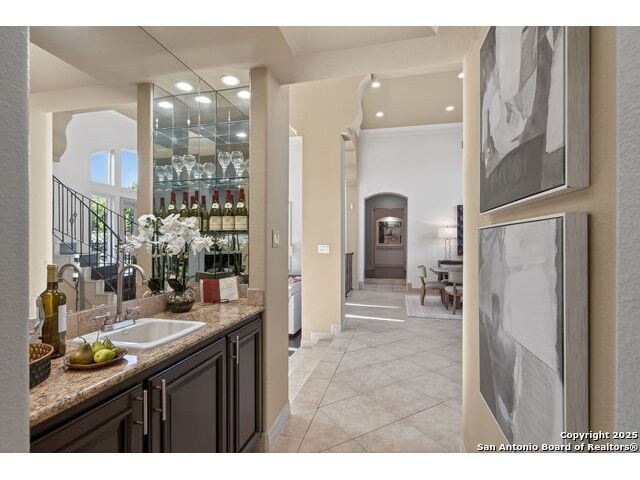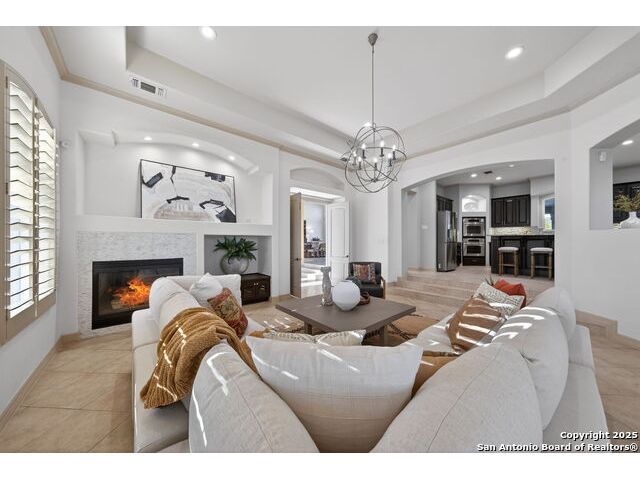 Welcome to this captivating Mediterranean-style estate on a VERY PRIVATE 1-acre lot in the prestigious, gated and guarded Village in the Hills / Big Springs community. The majestic exterior has enjoyed a recent repainting and all the windows have been also been replaced! The roof is beautiful, long-wearing clay tile. Behind the striking custom iron front doors, step into the dramatic two-story foyer. The floors are comprised of an elegant mix of warm wood and large ceramic tiles - both neutral to match any decor and elegant. This home features multiple living spaces, including a living area with a soaring wall of windows, a generous and cozy family room with it's own patio encased in glass walls and a large game room upstairs. The dining room features views of the backyard and French Doors to bring the outside in while dining. After passing the bar area - enjoy a kitchen with miles of granite countertops and stainless appliances for all your gourmet cooking needs. The breakfast and family room are open to the kitchen. Walk down the hallway and find the executive study with its own private patio that adjoins the primary suite. This study (and the primary) both offer a special locking system so that these rooms may be locked while entertaining guests in the home - keeping both work and bedroom safe and sound. The spacious primary suite boasts wood floors, a lovely chandelier and access to the private patio encased in glass walls (great for pets)! The primary spa bath is grand with a large tub and double shower and his and hers vanity areas and closets. Next, ascend the wood and handcrafted wrought iron staircase, and find three sizable bedrooms and game room - all with wood flooring and tile in the baths. The real SHOWSTOPPER is the outdoor oasis! Nearly brand-new Cody pool with sun shelf, many fountains, swim up counter and a spa are inviting along with a large covered patio and THREE other patios and firepit areas! The covered outdoor kitchen is also nearly new offering a long granite countertop, fridge, grill and storage. Seat SIX people at the counter at the edge of the pool/outdoor kitchen. Some can sit in the pool on the built-in stools and other can sit on the patio! (See aerial photo of the swim up bar). The backyard is level and private with trees, a vegetable garden and plenty of room to run and play. The playset can also convey. A three-car, side-load garage with epoxy floor provides ample storage. Shopping and restaurants are in the vicinity, and the airport is only a 12-mile drive. This home is the epitome of privacy, luxury, and convenience in a beautiful and private setting.