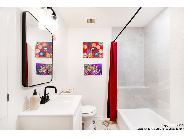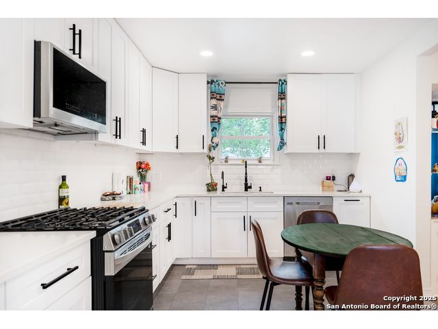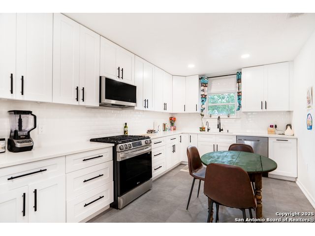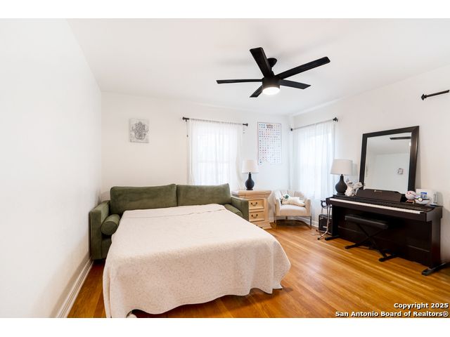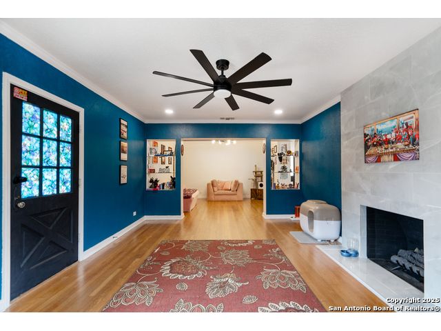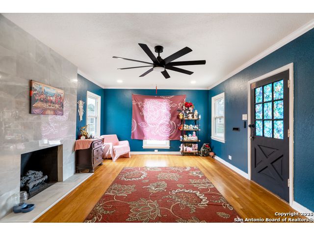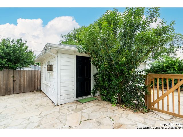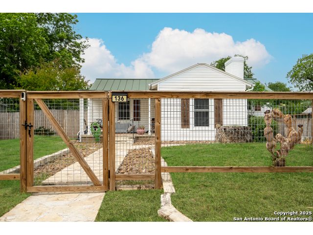 Welcome to 136 John Page - your beautifully updated retreat in a prime location! This charming 3-bedroom, 2-bath home includes a versatile detached flex room and sits on a spacious 0.19-acre lot. Just over a mile from Woodlawn Lake and the vibrant Deco District, you're also minutes away from the Medical Center and downtown San Antonio. Step inside to discover a stunning open-concept living area featuring a dramatic floor-to-ceiling gas fireplace and a statement modern ceiling fan. The original built-in book