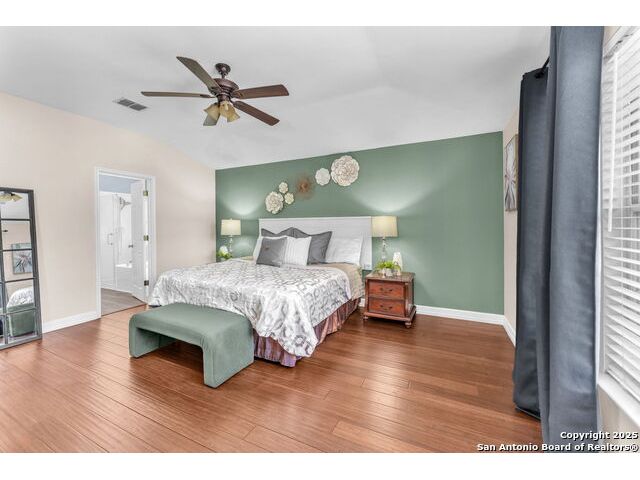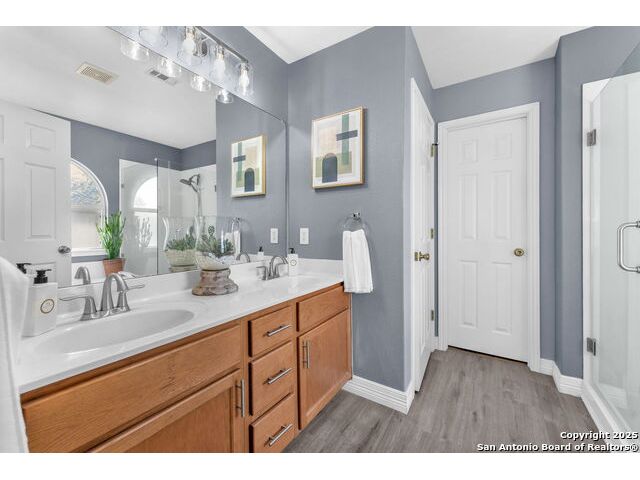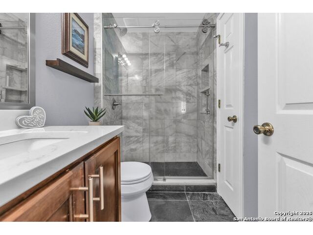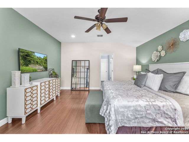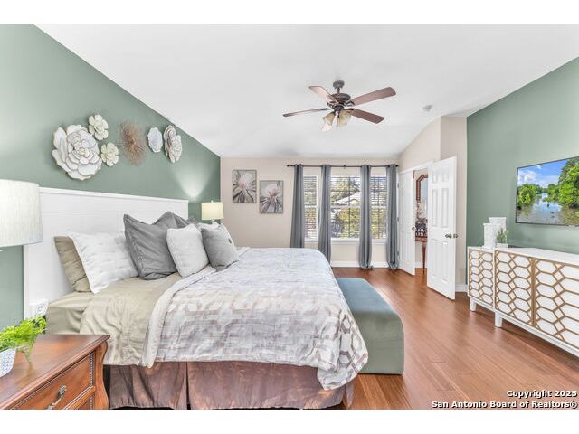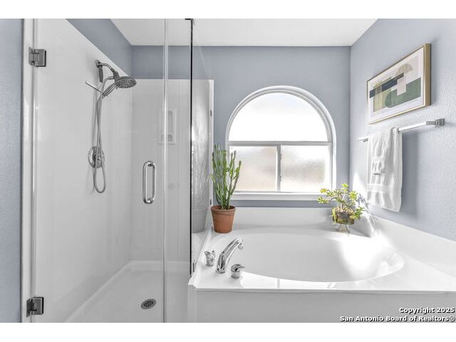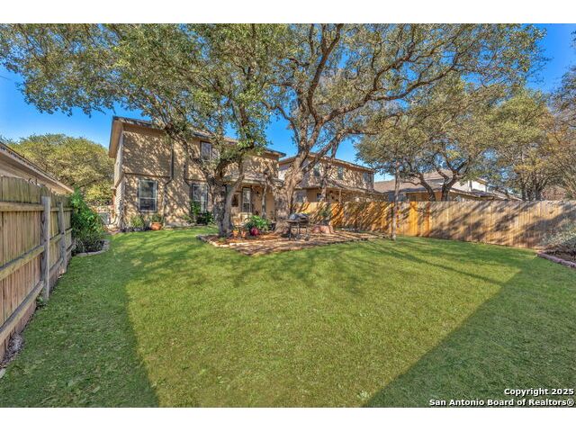 Welcome to the beautiful neighborhood of Steubing Ranch! This stunning 4-bedroom, 2.5-bathroom home impresses from the moment you arrive. You'll immediately notice the inviting curb appeal, and as you step inside, you're greeted by a bright open floor plan that seamlessly connects the living, dining, and kitchen areas. The kitchen features stainless steel appliances and updated recessed lighting, while the rest of the home showcases thoughtful upgrades that elevate every space-fresh interior paint, elegant bamboo flooring, a fully renovated guest bathroom, and more. Not to mention the recent water heater replacement, newer roof, and newer A/C unit, giving you peace of mind for years to come!! Upstairs, you'll find all four bedrooms, including the spacious primary suite. The primary bathroom offers a spa-like feel with its double vanity sink, large garden tub, and walk-in shower. Need an office space? You've got one! It's perfect for remote work, studying, or creating a quiet retreat. Step outside to discover an expansive backyard designed for relaxation and entertainment. The large covered patio provides the perfect shaded space for outdoor dining or lounging.This backyard truly extends your living space and offers endless possibilities for year-round enjoyment. Beyond the home itself, the location is unbeatable. You're just a few blocks away from park and the refreshing neighborhood pool. Major highways (1604, 281 & 35) are easily accessible, making commuting a breeze. Plus, you're close to a variety of shopping, dining, and entertainment options. This home truly has it all-space, upgrades, outdoor charm, and a prime location. Don't miss out! Schedule your showing today and experience the perfect blend of comfort, convenience, and charm that this Steubing Ranch home has to offer!