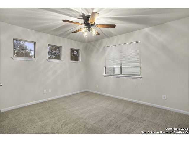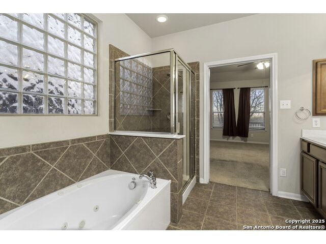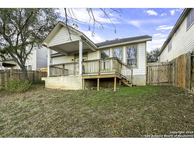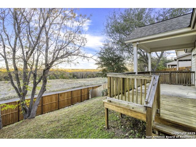 Welcome Home to this beautiful 3 bedroom 2 1/2 bathroom 2 story home. Enjoy an open living area with a built-in desk with a downstairs master with separate shower & relaxing jetted garden tub. Kitchen features granite countertops with large island and upgraded 42 maple cabinetry. Big covered patio & wood deck with spectacular views!Plus a water softener in your 2 car garage. Located just minutes from IH-10/1604, UTSA, La Cantera, The Rim, Valero, FBI, and the Medical Center, with endless shopping and dining options. NISD schools! Come see it today!