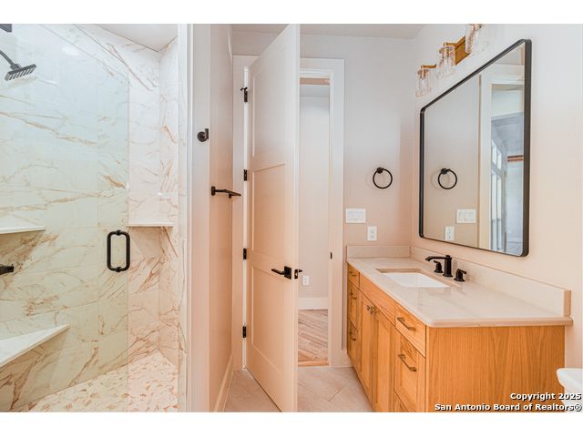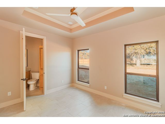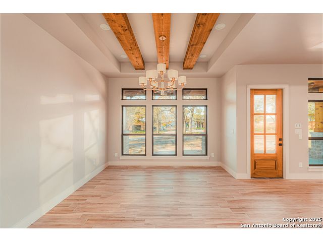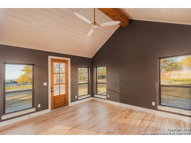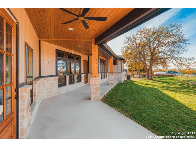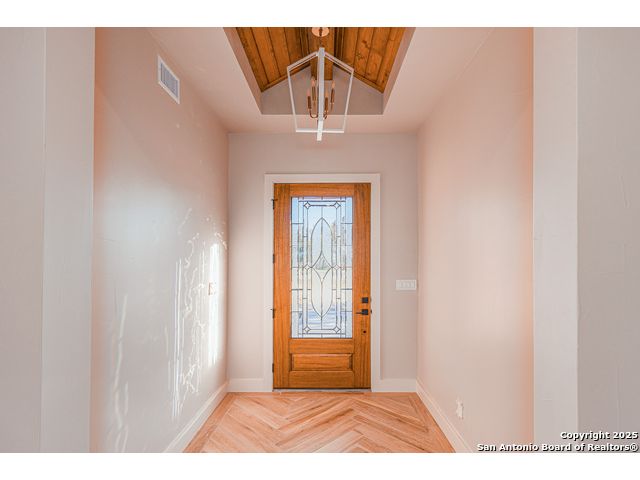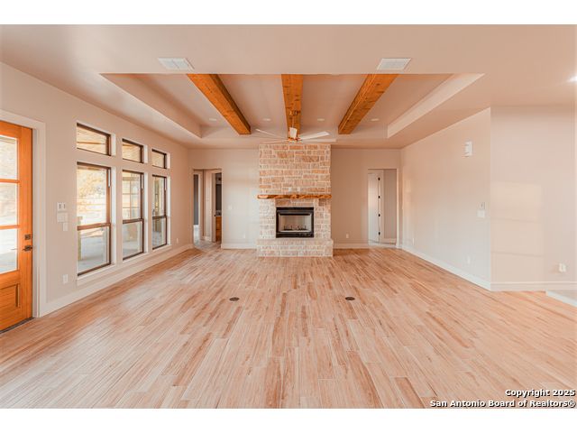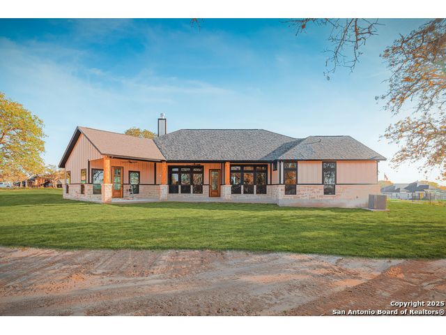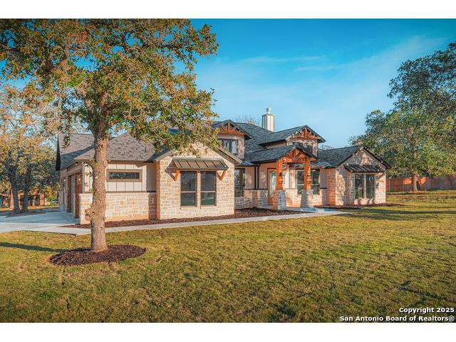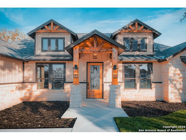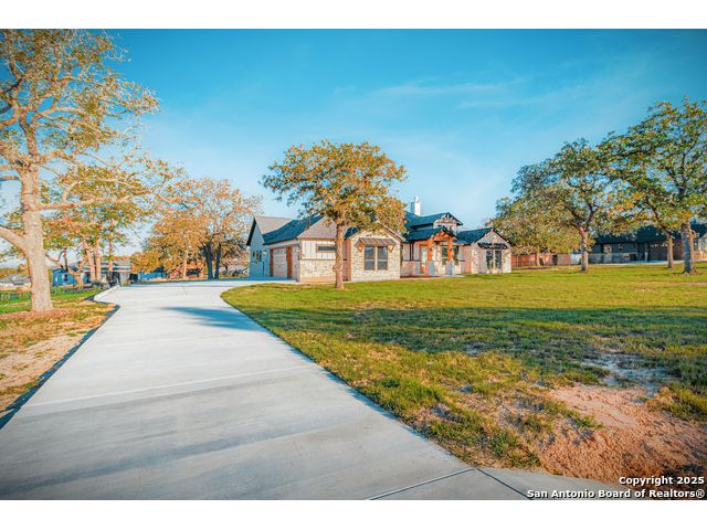 Stunning. Spectacular. Sublime. OPEN HOUSE: Saturday, December 20th, 1-4pm! This Newly Crafted Home w/3-car garage is situated on 1 Acre of countryside, with Exceptional Long-Distance views all the way to downtown San Antonio! Tucked into wooded surroundings, less than 10 minutes to the amenities of La Vernia, and within 35 minutes to SA. The Entry Foyer beckons you inside, where you will discover chic stylish finishes throughout a thoughtful layout. The main living expanse encompasses the generous living room, dining room, and kitchen, with an airy and open ambiance. Elevated ceilings are graced by rustic wood beams, and elegant lighting fixtures offer designer flair. Dreamy tones illuminate the Gourmet Kitchen, showcasing sleek European-Style Cabinetry w/Champagne Bronze Hardware, Quartzite Counters, and state-of-the-art stainless steel KitchenAid Appliances! Don't miss the Fabulous Pantry w/fun brick-tile floor, extra cabinetry & counter space, plus ample shelving. Journey into the stately 2nd Living / Study / Office (which could even be a 5th bedroom) and find handsome charcoal walls, abundant windows, and a vaulted shiplap-lined ceiling. The Fashionable Master Retreat features transom windows, a soaring stepped ceiling, and luxurious bath w/freestanding tub + spacious dual-head shower! One of the master closets connects conveniently to the Laundry Room. The secondary bedrooms will not disappoint, with the front bedroom featuring a high ceiling w/bountiful natural light. The hall bath offers double vanities, and the 3rd full bath features a walk-in shower. Tile & wood-tile flooring throughout for easy care (no carpet!), 1-2-10 year Bonded Warranty, Fiber Optic Internet available, custom Pecan Mantel at fireplace, Framed Mirrors, Hand-Troweled Wall Texture, and So Much More!