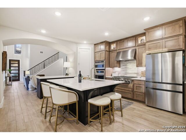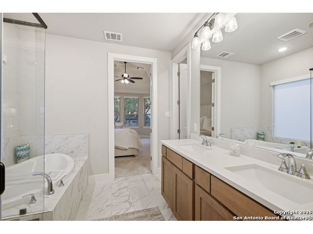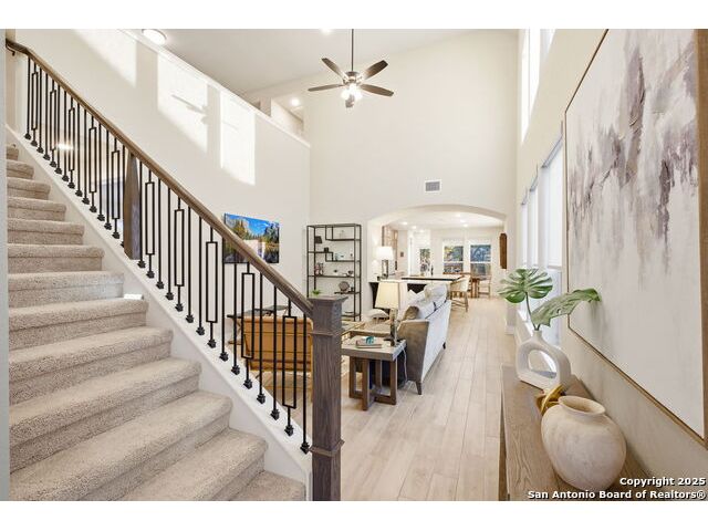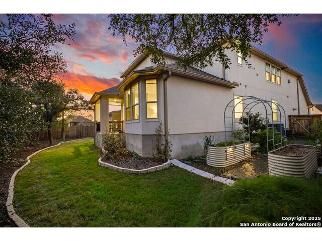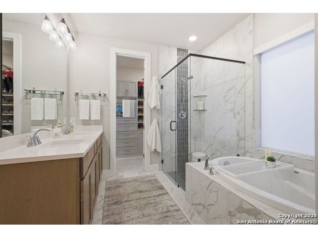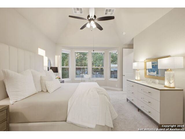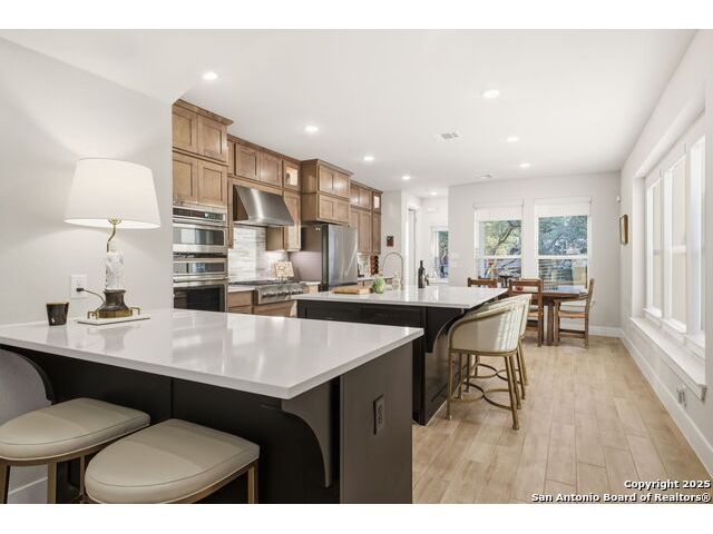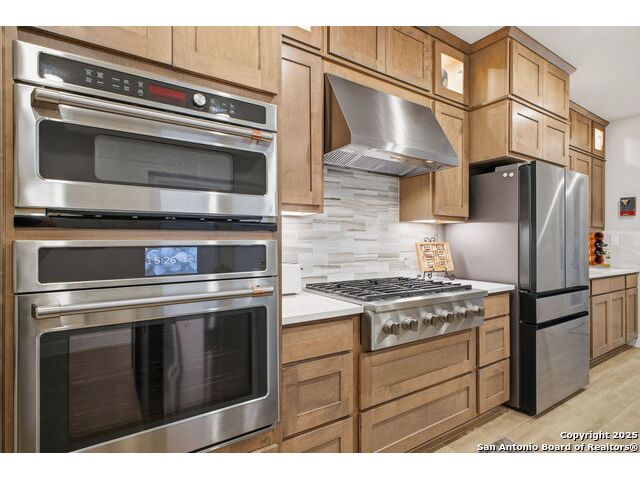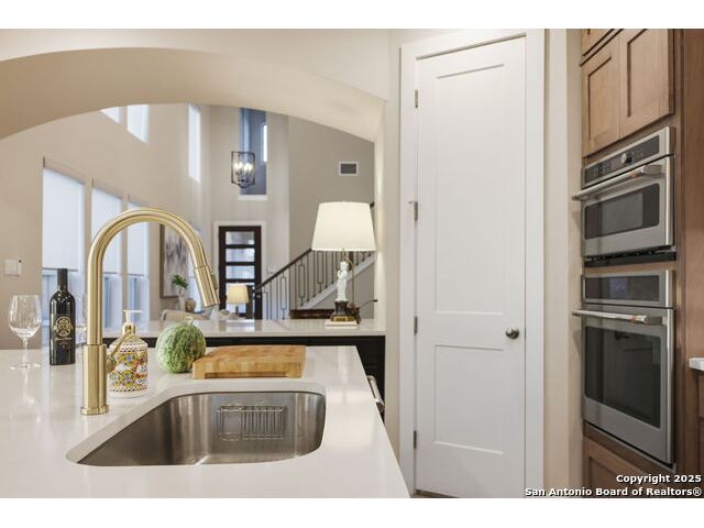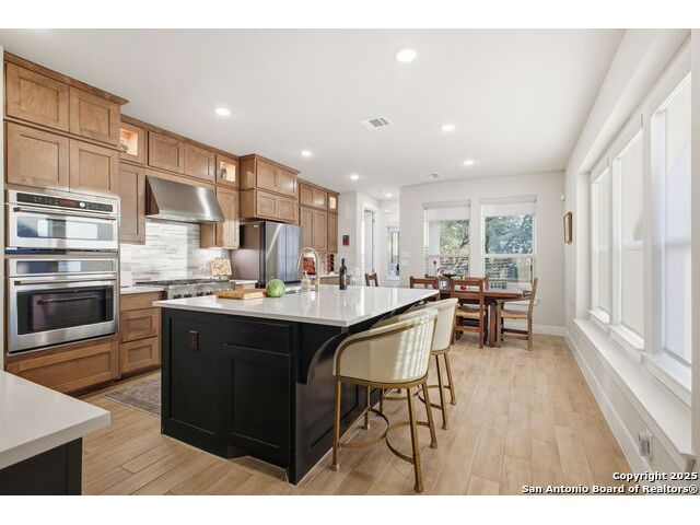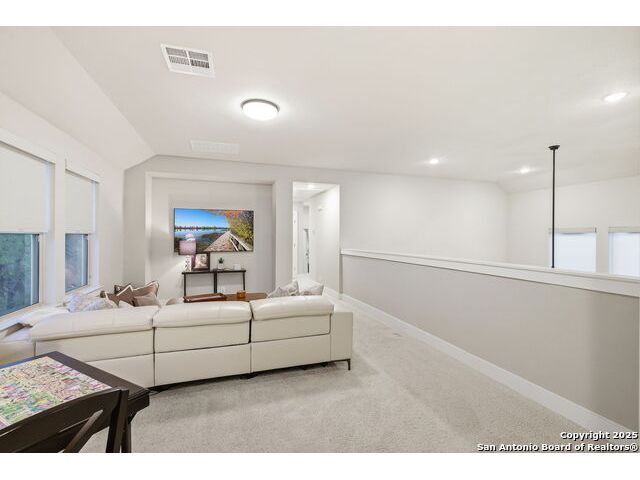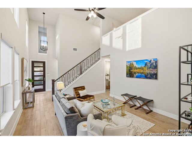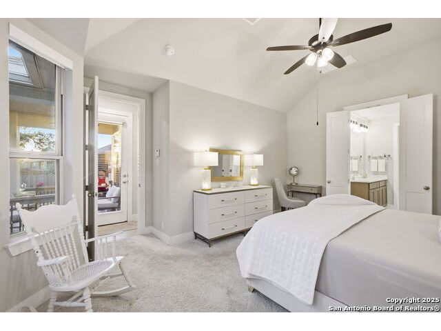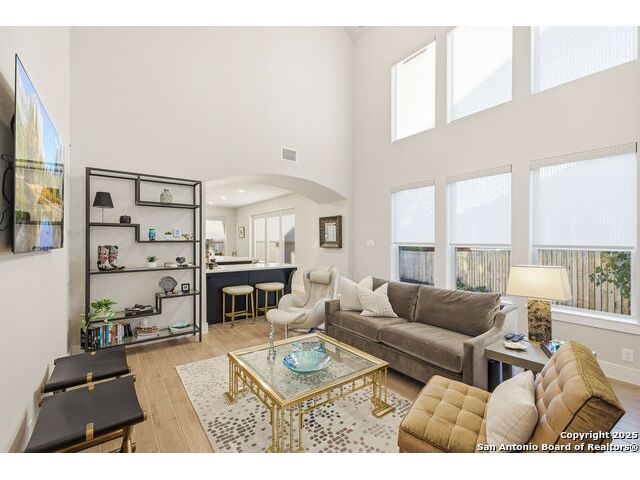 Discover this exquisite 4 bedrooms, 3 1/2 baths home in Gruene, nestled near the revered Gruene Historic District. Envision residing in a quaint community yet being only a short distance from vibrant entertainment and lifestyle options. Take a leisurely golf cart ride to nearby attractions and the many famous local hotspots. Furthermore, the Guadalupe & Comal Rivers are both accessible as well as the #1 waterpark in the country, Schlitterbahn. There is a small town feel yet a variety the favorite restaurants, doctors & hospitals, 3 HEB locations, and even a Buc-ee's all within a 4 mile radius, making this the quintessential lifestyle. You can be to the San Antonio airport or downtown in 30-40 minutes and Austin in under an hour, which is another reason why New Braunfels is the fastest growing city in Texas at the moment! This stunning property crafted by the esteemed local builder Highland Homes flaunts an array of upscale enhancements including 2 story ceiling, dual serving slabs in the gourmet island kitchen that boasts an abundance of custom cabinetry with glass accent and lighting, impressive and distinct Cafe appliances for that high-end cooking experience with style. Enjoy the breakfast bar and a dining area as well as an outdoor patio that could be used for al fresco dining. The home is pristine yet functional and comfortable. The primary suite is fit for a king and his queen with a bay window sitting area, soaker tub, oversized steam shower and LED mirrored California custom closet. The well thought of second bedroom down has an ensuite that could serve as a second primary area. We have two more bedrooms and another full bath upstairs and a game room serving as another living space. The grand two story living area on the main floor is ready for your flat screen and equipped with a remote blind system. The lush yard with mature trees also possesses a seasonal thriving garden for farm to table freshness. Home backs to a ranch so there are no rear neighbor home windows viewing this property. The garage has a designer Epoxy, tankless water heater and is ready for your golf cart and vehicle. This home is truly a must see!