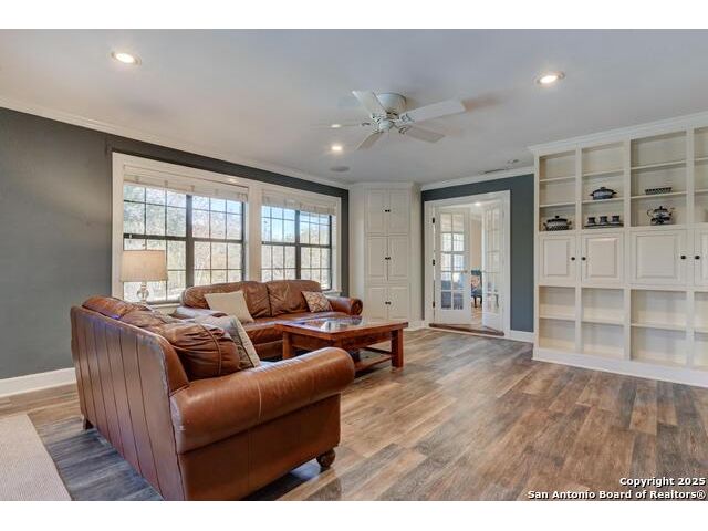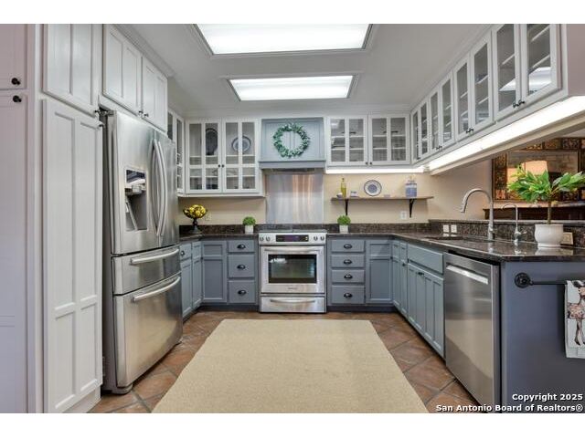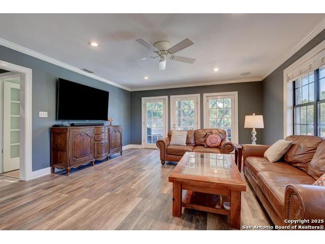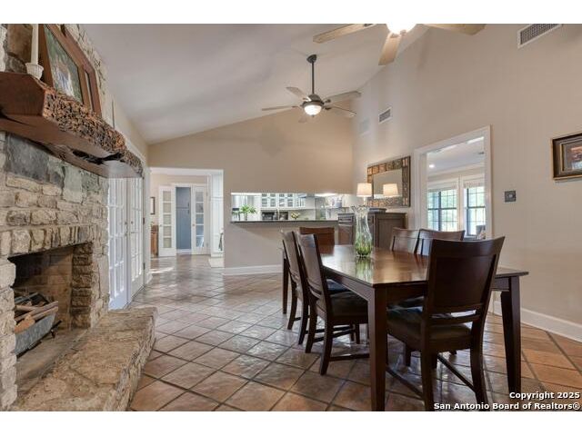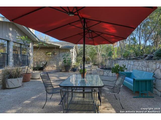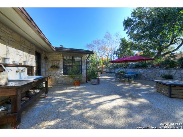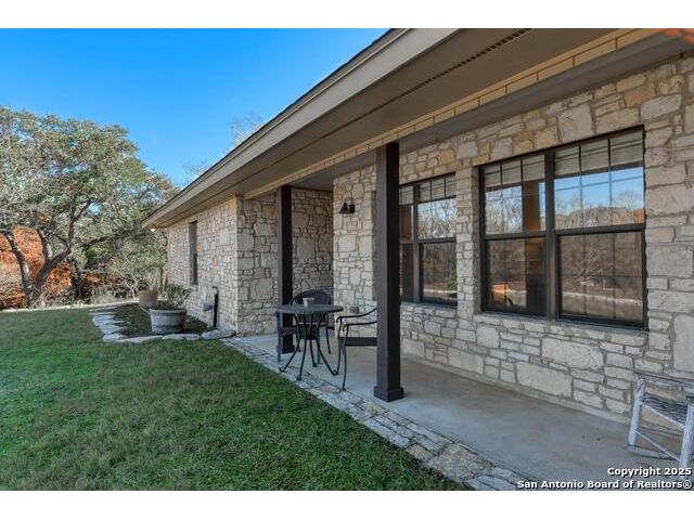 Discover your own private retreat on 3.43 acres. This single story home offers 4 bedrooms and two full baths in a layout designed for easy living. The heart of the home is the light filled kitchen, where an eat in breakfast room with abundant natural light from the 3 sides of windows that one can enjoy the beautiful patio area & outside. Solid countertops, stainless steel appliances, glass cabinetry to showcase your best dinnerware, and a gas range. Step into the living room, where a wood burning fireplace with a custom mesquite wood mantle creates a focal point for cozy evenings. The family room features built in shelving and floods with natural light from French glass doors that open to a side covered patio. A separate dining area near the entry offers flexibility for formal meals or additional living space. The owner's suite is a peaceful retreat with a walk in closet and a full bath featuring a large skylight. Outdoors, extensive flagstone patios invite al fresco dining, quiet relaxation or gatherings. The detached two car garage includes an adjacent carport for extra parking or storage. A 3030 metal building expands the possibilities-ideal as a workshop, studio or additional storage. The property has a water well with reservoir (2600 gallons). Controlled access gate with remote. Whether you're enjoying the spacious interiors, exploring the acreage in search of fossils, or simply soaking in the serenity of the land, this property offers a rare blend of comfort and adventure for those seeking a true country lifestyle.