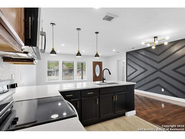 Beautifully remodeled 4-bedroom 2-bathroom with front covered porch home conveniently located near downtown. Upgrades throughout, this residence offers a perfect blend of contemporary living and convenience. Polished wood flooring and new tile in kitchen/dining & bathrooms. Beautiful renovated kitchen with new quartz countertops, modern lighting, new faucet/sink, stainless steel appliances, new cabinets, ideal for everyday meals and entertaining guests. Brand new HVAC, water heater, cabinets, doors/hardware, plumbing and electrical. Primary Bedroom has ceiling fan with full bath having nice luxury sized tiled shower. Bedrooms are all good sized. Exterior backyard is set up for serenity, storage, and relaxing. Backyard features great size yard, covered porch with deck, , gutters & two storage sheds. Located in a vibrant neighborhood just minutes from Southtown, King William, Downtown, and a quick drive to the Pearl. You can also enjoy quick & easy access to major highways like as I-10, 35, and 90. Come and experience the charm firsthand!