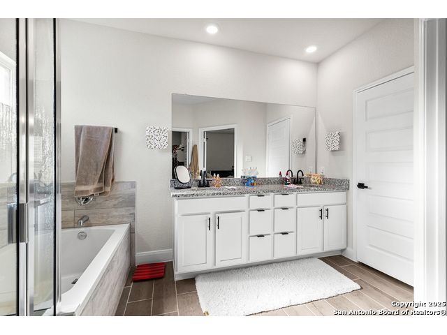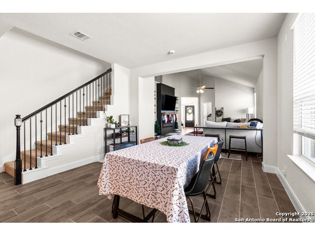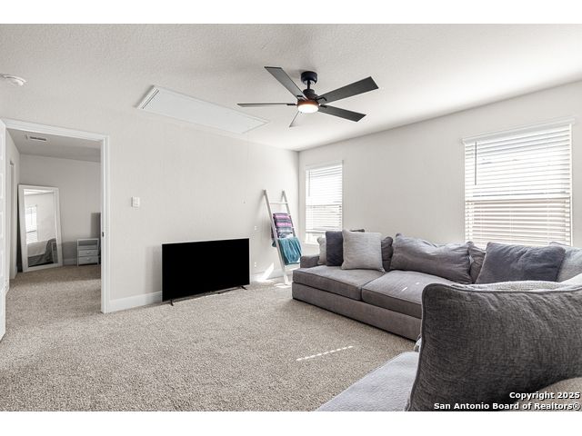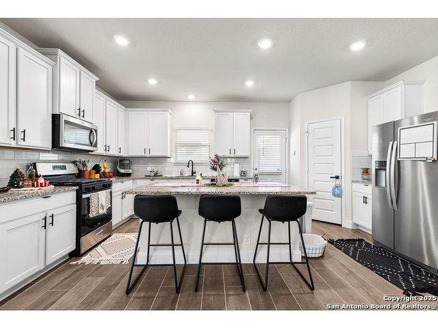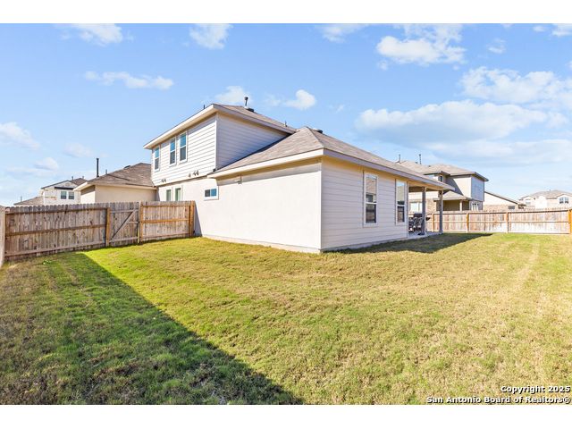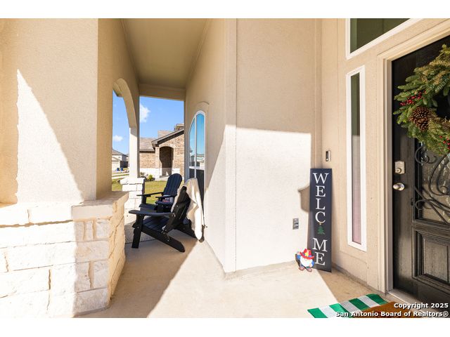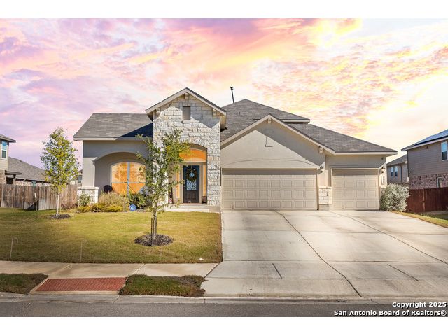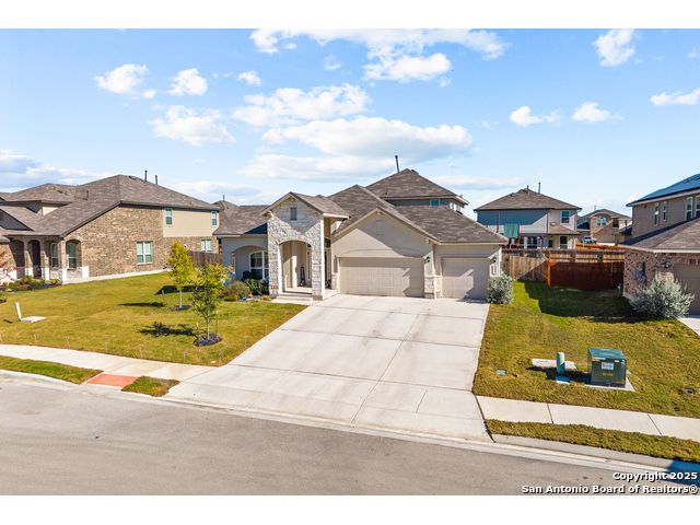 FHA Assumable Rate that can save you hundreds in your monthly payment. Immaculate and thoughtfully upgraded, this stunning residence shows beautifully and is ideally located in the sought-after lifestyle community of Steele Creek, where modern design meets everyday convenience. Situated on an 0.23-acre lot, The Hondo floor plan is a beautifully designed two-story home offering 2,702 square feet of living space with 4 bedrooms and 3 bathrooms-the perfect layout for comfort and flexibility. Step through the inviting entry into a spacious living room that flows effortlessly into a dedicated home office, ideal for working or studying from home. A private hallway off the living area leads to two secondary bedrooms, each featuring walk-in closets, and a full bathroom. The open-concept kitchen and dining area create the heart of the home, showcasing granite countertops, stainless steel appliances, a walk-in corner pantry, and a generous island perfect for meal prep or casual gatherings. The private main suite, tucked away off the kitchen, is a true retreat-complete with dual vanities, a walk-in shower, separate garden tub, and a spacious walk-in closet. Upstairs, you'll find a versatile loft, a full bathroom, and an additional secondary bedroom with walk-in closet, offering flexibility for guests or a media space. Designed for today's lifestyle, this home includes Home is ConnectedTM smart technology, allowing you to control lighting, thermostat, and locks directly from your smartphone. Additional premium features include 9-foot ceilings, 2-inch faux wood blinds throughout, pre-plumbing for a water softener, full-yard irrigation, Radiant Barrier roof decking, and a 3 car garage making the additional 3rd a great home gym. With its blend of comfort, technology, and timeless style, this home perfectly embodies modern living in the vibrant Steele Creek community. Located in the Schertz-Cibolo-Universal City ISD and walking distance to Steele High School. Convenient to Randolph AFB, Fort Sam Houston, shopping, dining, and major entertainment. This home is still under the builder's 10-year structural warranty, which transfers to the new owner for added peace of mind. As part of a vibrant master planned lifestyle community, residents enjoy resort-style amenities, including a 24/7 fitness center, swimming pool, splash pad, playground, picnic area, basketball court