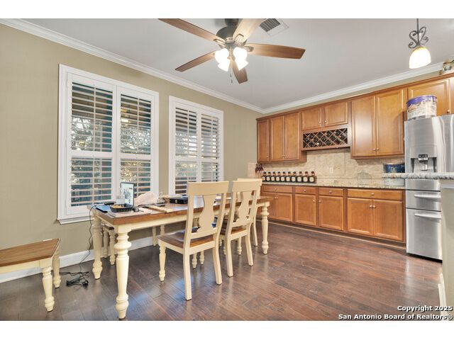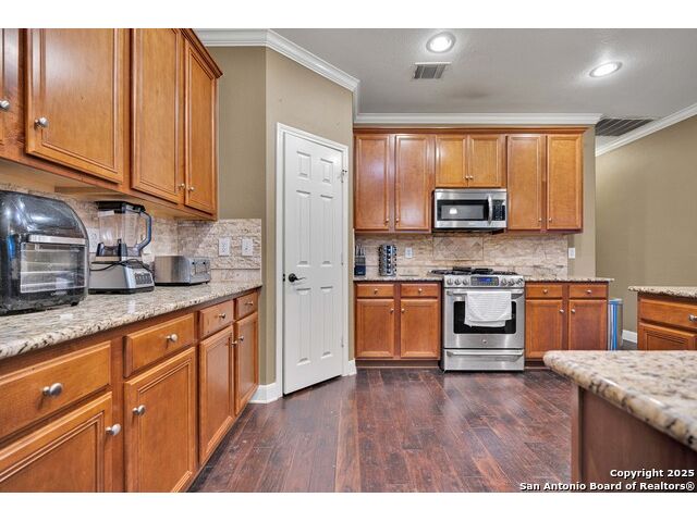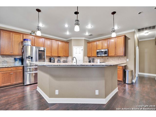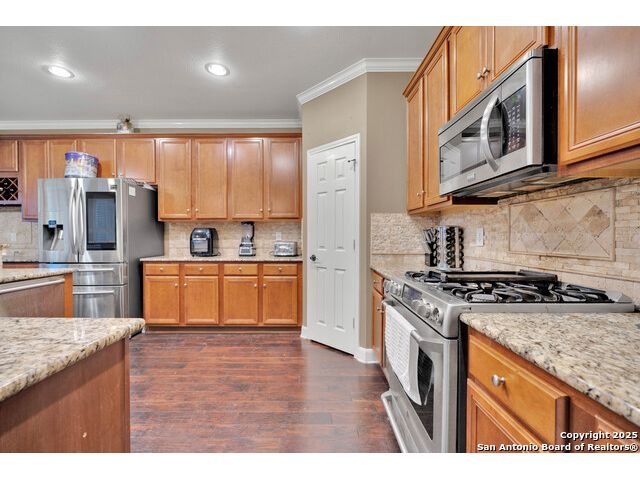 Beautifully upgraded home with exceptional features throughout! This spacious 5-bedroom property offers hand-scraped wood floors, plantation shutters, and an oversized kitchen with extended cabinetry, abundant counter space, and upgraded granite. The primary suite includes a custom California Closet for added luxury and organization. Enjoy excellent energy efficiency with radiant barrier, Energy Star appliances, and solar screens. The backyard is perfect for entertaining, providing the ideal space for gatherings. Motivated sellers-don't miss this one!
