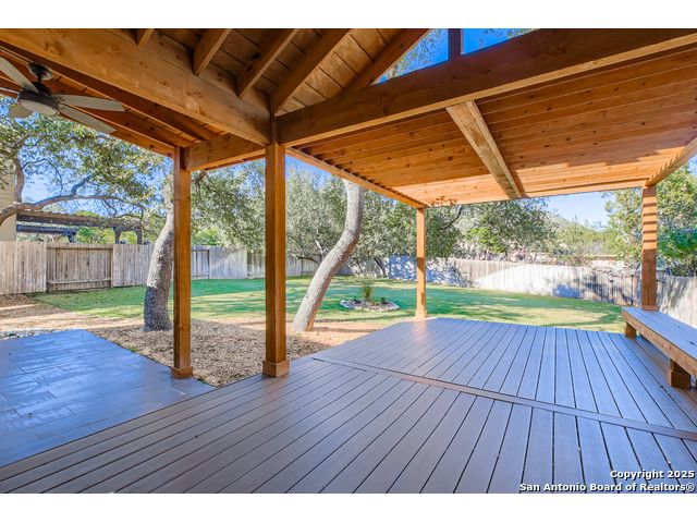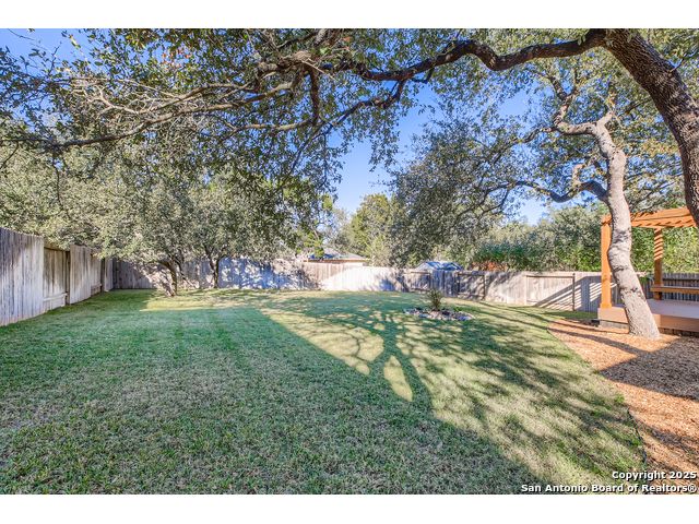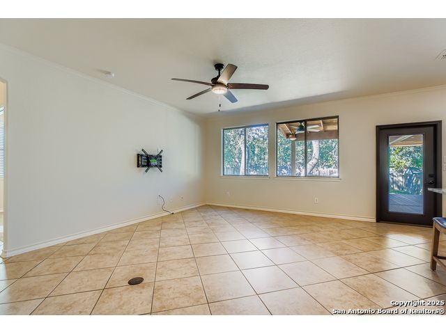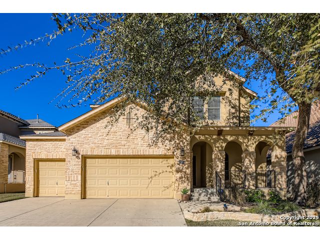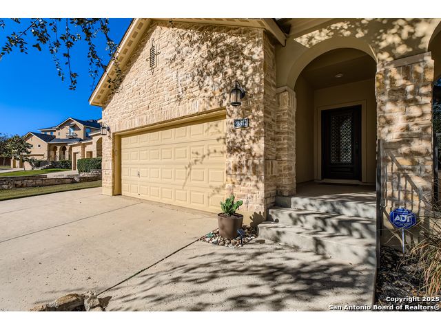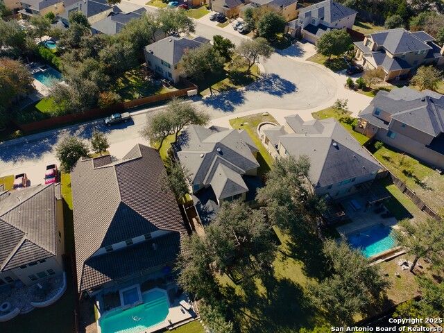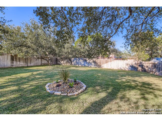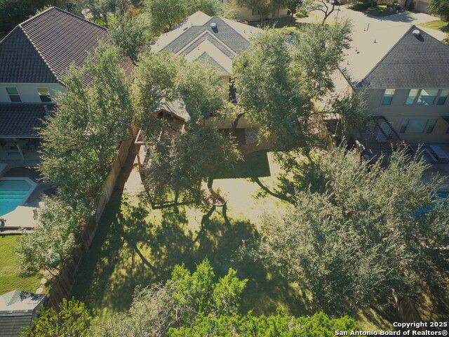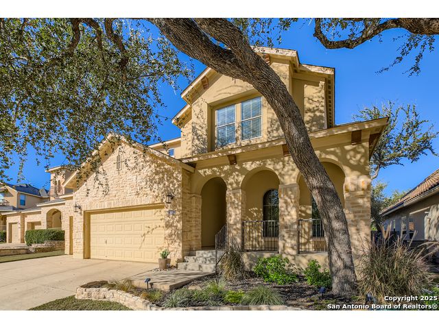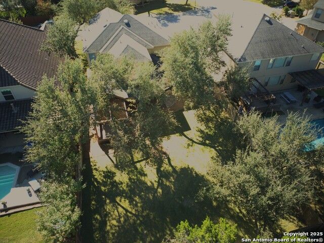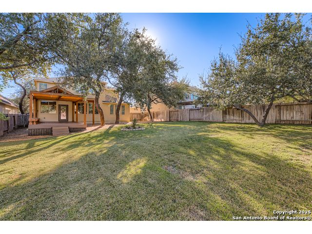 Nestled in the desirable Cliffs at Cibolo subdivision, this beautiful and luxurious home is truly move-in ready, offering an impressive blend of style, comfort, and space. Designed with high ceilings and an open floor plan, the layout creates an inviting atmosphere from the moment you walk in. Oversized tile flooring extends throughout the multiple living and dining areas on the main level, enhancing both durability and visual appeal. The custom island kitchen serves as the heart of the home, featuring stainless steel appliances, granite counters, and generous workspace that makes everyday cooking and entertaining effortless. An office on the main level provides the perfect setting for remote work or quiet reading, while the additional game room and media room give everyone the freedom to spread out and enjoy their own activities. The separate primary suite on the main level offers a peaceful retreat, complete with a spacious en-suite bathroom designed for comfort and relaxation. Upstairs, secondary bedrooms accompany full bathrooms, providing privacy and convenience for family or guests. Outdoor living is equally inviting with a patio and extended decking that overlook the large, lushly landscaped backyard, creating an ideal setting for gatherings or quiet evenings in a private, serene environment. This well-appointed home offers even more features throughout and is perfectly situated near local amenities, major highways, and schools, ensuring both convenience and a vibrant lifestyle. It stands as an exceptional opportunity to enjoy upscale living in a sought-after location.