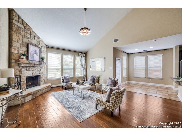 Get ready to kick off the NEW YEAR in style in this home! Celebrate a fresh start to 2026 on the large covered patio at this beautifully maintained 4 bed, 3.5 bath home in Stillwater Ranch. Take a moment to appreciate the gorgeous fieldstone and brick exterior, shaker plank doors, upgraded fixtures, and rich wood handscraped wood floors that welcome you inside. This spacious layout features open concept living for you to keep your conversations flowing from the kitchen to the cozy living area with fireplace. The primary suite & private office are on the main level, with three additional bedrooms, a huge secondary living area, AND a game room with double doors upstairs! There are 2 bathrooms upstairs..notice one has a tub and the other a full extended shower! Kids could take over the upstairs and the adults still have a place to enjoy conversation downstairs! Create culinary delights in the chef's kitchen with granite countertops, huge central island with extra storage and endless workspace, and stainless steel appliances. Outdoor features include full sprinkler system, and mature trees for shade and rustling sounds for comfort. New roof (2023) Look forward to an active lifestyle at the Stillwater Ranch Community Park and meet some neighbors to build community! With access to a resort style pool, basketball court, tennis and pickle ball court, playground, walking trails AND Fitness Center...you can make memories to last just minutes away from your home. Google Fiber Internet is available too! Avoid the constant noise of construction, contractor truck traffic, and nails in tires in this established part of the community! This is the one you have been waiting for!