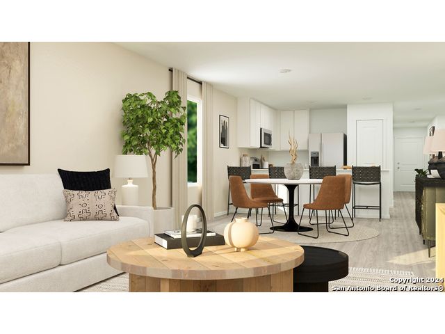 The Timms- This convenient single-story plan opens to three secondary bedrooms framing the entryway. Down the hall, an open peninsula-style kitchen overlooks an inviting dining area and a spacious family room, ideal for seamless modern living. The owner's suite is ideally situated in the back corner to provide a serene retreat, featuring a bedroom, attached bathroom and a walk-in closet. Prices and features may vary and are subject to change. Photos are for illustrative purposes only.