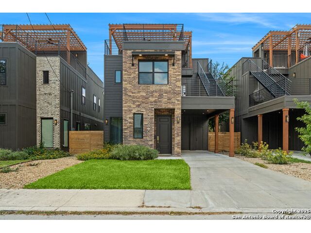 New Construction - Modern Industrial Luxury in Lone Star District! Experience modern living in this brand-new 3 bed, 2.5 bath home located in San Antonio's thriving Lone Star District. Nearly 2,000 sq ft of sleek design featuring 10-ft ceilings, quartz countertops, soft-close cabinetry, and designer finishes throughout. Gourmet kitchen includes built-in cooktop, double wall oven, and upscale fixtures. Open-concept layout flows into bright living and dining spaces. Convenient laundry chute adds smart functionality. The primary suite offers a spacious layout with a spa-like ensuite bath and walk-in closet. Two additional bedrooms provide flexibility for guests, home office, or growing families. A massive private rooftop retreat with breathtaking panoramic views of downtown San Antonio. Entertain under the stars with your fully equipped outdoor kitchen, complete with a sink, refrigerator, built-in gas grill, and a pergola-covered lounge area-ideal for hosting or relaxing in style. Situated just steps from the vibrant Second Saturday Art Walk and minutes from Southtown, Blue Star, King William, The River Walk, and The Pearl, this home places the best of San Antonio's culture, cuisine, and nightlife at your doorstep.This is more than a home-it's a lifestyle.Come experience it for yourself. Schedule your private tour today.