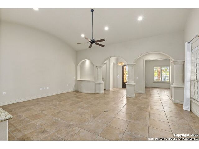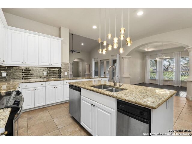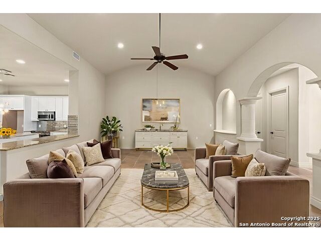 ** Priced $30,000 Below Appraised Value!!** Welcome to 6710 Ghia Ln. This exquisite 3 bedroom, 2.5 bath single-story home, spanning 2,922 square feet, is located in the prestigious, guard-gated Dominion community, where luxury, comfort, and privacy come together seamlessly. Built in 2006, it features three generously sized bedrooms, two full bathrooms, and an additional powder room. As you enter, you'll be welcomed by an open-concept floor plan that exudes elegance. The living room flows effortlessly into the kitchen area, creating an ideal space for entertaining. Abundant natural light fills the home, enhancing its inviting atmosphere. The kitchen features spacious granite countertops and modern lighting above the island. The primary bedroom serves as a true retreat, offering ample space along with an en-suite bathroom that includes a walk-in shower and dual vanities. A spacious walk-in closet with built-ins completes this luxurious suite. Additional features include a covered patio, perfect for enjoying outdoor living and the peaceful surroundings. This home offers a harmonious blend of indoor and outdoor spaces, making it a rare gem in the Dominion community, where security and luxury living are paramount. The Dominion Golf Club presents a diverse range of membership options, allowing you to enjoy various amenities, including a clubhouse, tennis courts, pickleball courts, a pool, a fitness center, and a scenic 18-hole golf course. Minutes from the Shops at La Cantera, Fiesta Texas Six Flags, The Rim, various dining and entertainment options.