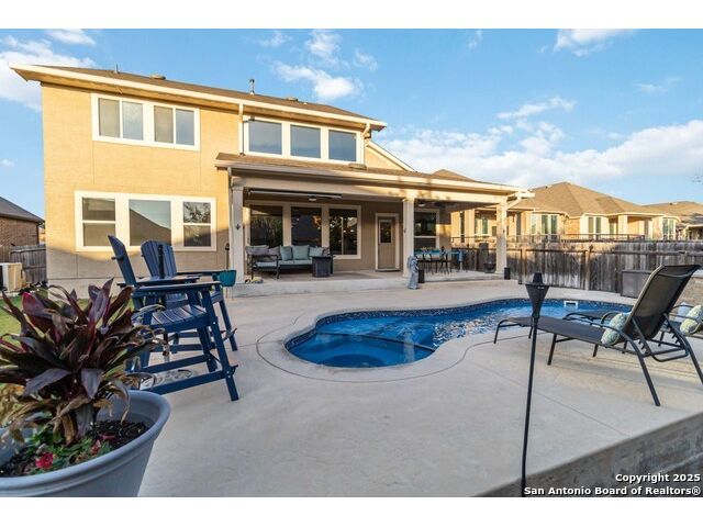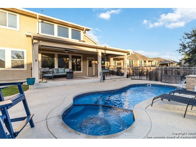 Welcome to 12336 Saddle Up Drive, nestled in the highly desired Davis Ranch community! This stunning 4-bedroom, 3.5-bath home, built in 2019, offers the perfect blend of modern comfort, thoughtful upgrades, and outdoor luxury-all situated on a quiet cul-de-sac lot with beautiful landscaping and curb appeal! Inside, you'll find a spacious and versatile layout featuring two living areas, an inviting dedicated study, and four extra-large bedrooms that provide comfort and privacy for the whole family. The heart of the home is the beautifully designed open kitchen, which seamlessly connects to the main living and dining spaces-perfect for entertaining and everyday living. The kitchen boasts a massive island, extensive storage, and modern finishes that make cooking and gathering effortless. The natural lighting and soaring ceilings give the space a warm yet expansive feel that truly elevates the home. Step outside to your private backyard oasis with an in-ground saltwater pool and spa with a tranquil water fountain equipped with both heater and chiller, and a Rain Bird sprinkler system to keep your landscaping beautiful year-round. Enjoy upgraded outdoor living with reflective tint for privacy and heat reduction, patio ceiling fans, enhanced lighting, patio shades, and a natural gas outlet ready for easy grilling. A dedicated barbecue concrete slab adds even more convenience for outdoor gatherings. The home also features an oversized two-car garage with an adjoining area ideal for additional storage, a home gym, or workspace, providing even more versatility. Additional upgrades include a water softener, full gutters around the entire home, landscaping with retention walls, extra long driveway for an estimated 6 plus vehicles with an extension on each side, extra electrical outlets and soffit lighting on the front and back patios, additional storage shelves in the garage and upgraded lighting throughout the patio areas. From the spacious interior to the resort-style backyard, this home has been thoughtfully designed and enhanced for comfort, entertainment, and everyday convenience. Located minutes from the highway, restaurants, shopping and entertainment! Schedule your showing today!