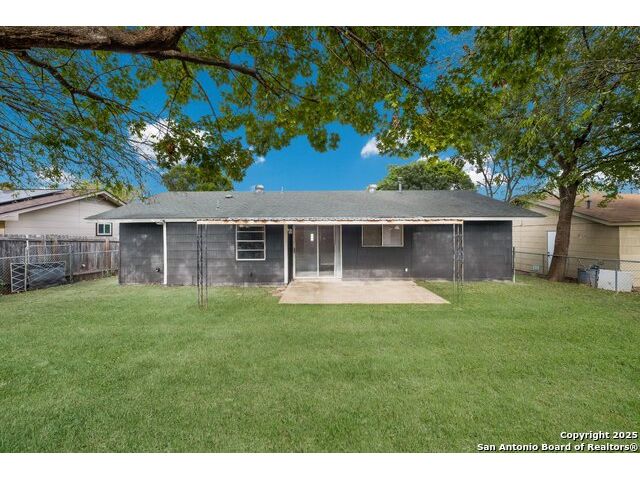 This cozy one-story, 3-bedroom home located in the popular Hills/Sierra North community. Fresh exterior paint, no carpet, and a functional galley kitchen make move-in easy-yes, the refrigerator stays! The layout is simple and practical, and the covered patio and spacious backyard are ready for outdoor relaxing. Located in Northeast ISD with quick access to I-35, Wurzbach Pkwy, Ft. Sam, Randolph AFB, and shopping at The Forum. Homes like this tend to go fast-don't miss it.