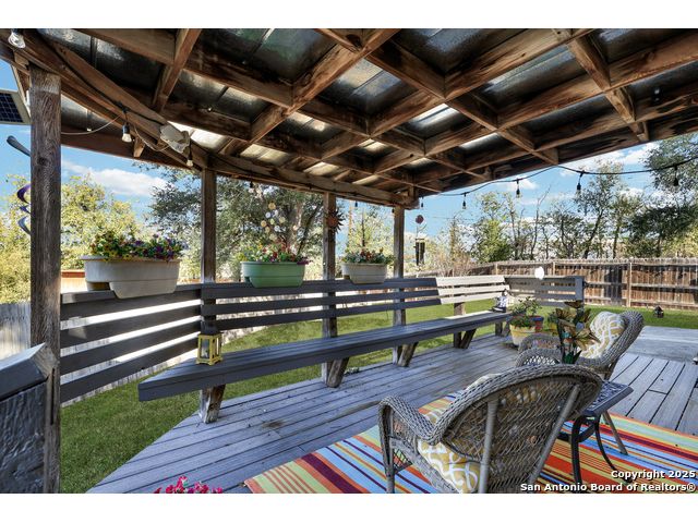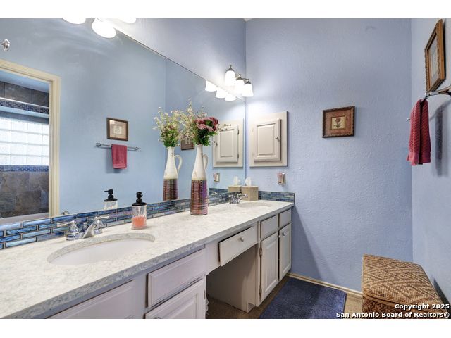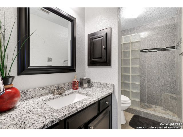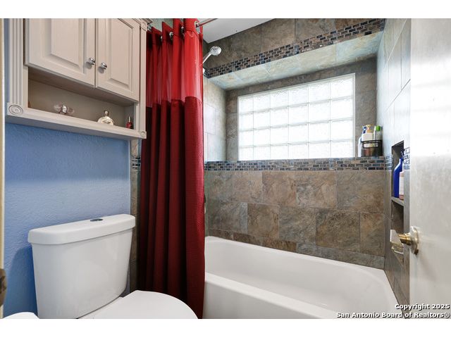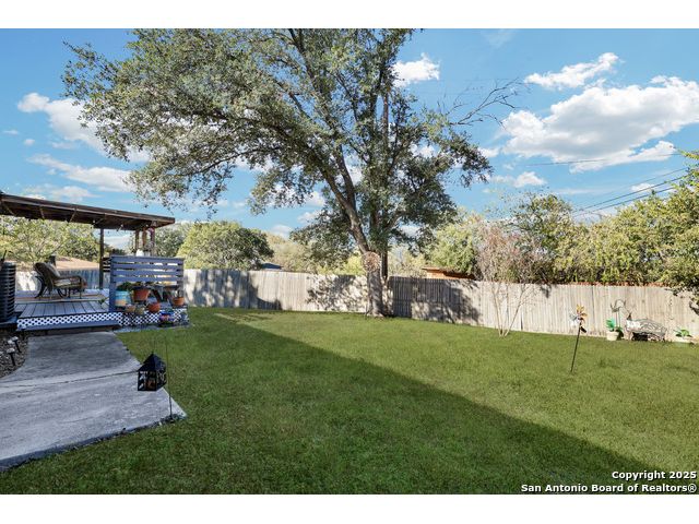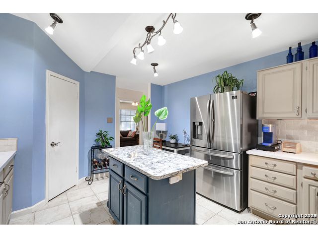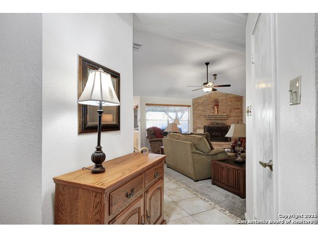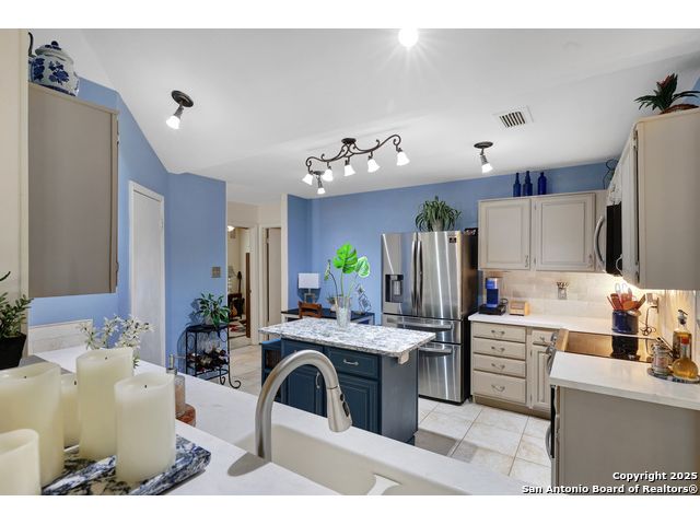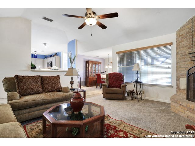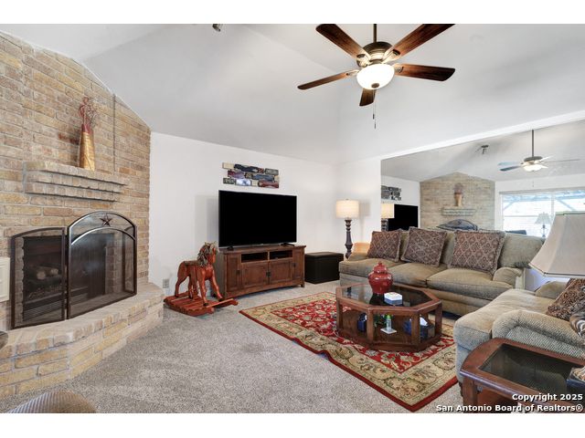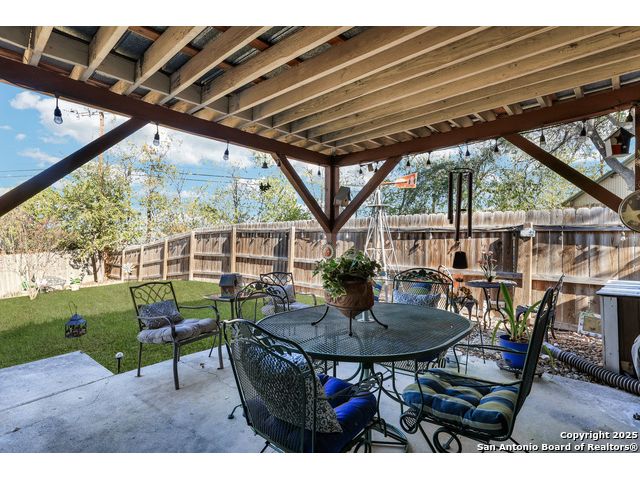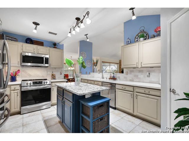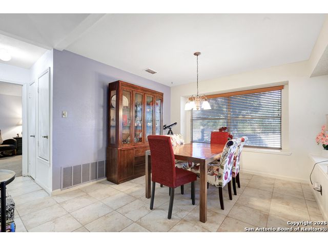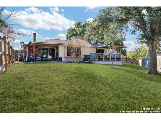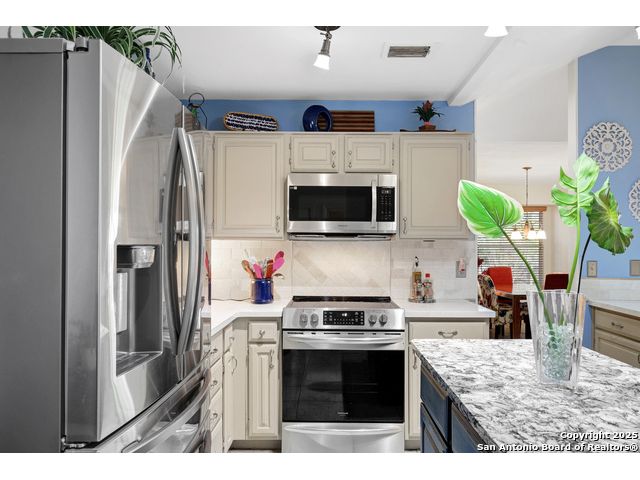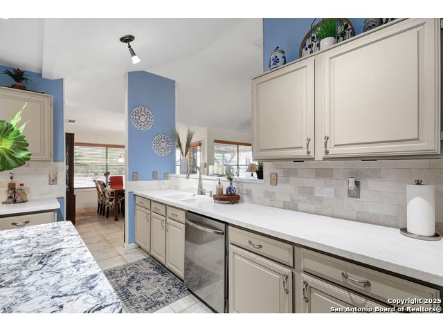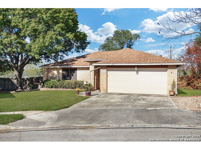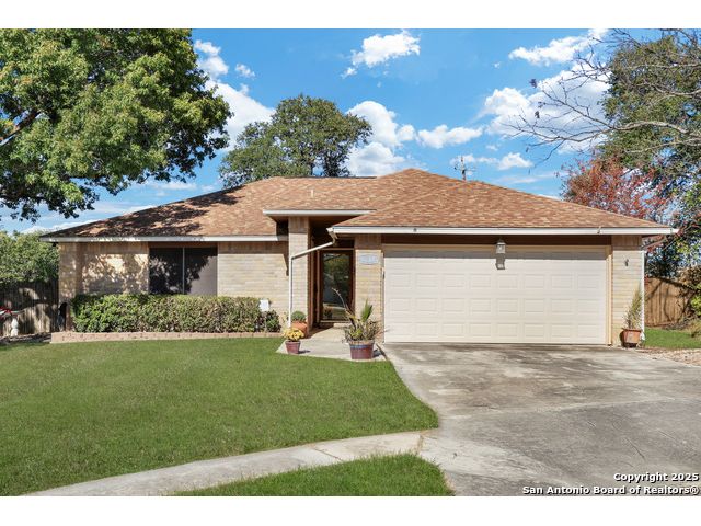 Don't miss this charming one-story home tucked away on a quiet cul-de-sac in the highly sought-after Apple Creek community near the Medical Center! Known for its well-kept homes, neighborhood pool, and convenient access to top-rated schools, this community offers an unbeatable location just minutes from the Medical Center, USAA, and UTSA. Mature trees enhance the peaceful, established setting. Step inside to an inviting open floorplan featuring a cozy corner gas fireplace, an elegant tray ceiling, and large windows that fill the living area with natural light. The updated kitchen shines with stylish accent walls, a Cambria-topped island, seamless countertops, a real stone backsplash, and an upgraded 80/20 sink. Enjoy cooking with modern stainless steel appliances (approximately four years old), including a convection-capable stove, microwave, dishwasher with a third shelf, and disposal. A separate dining area provides the perfect setting for meals and gatherings. Outdoor living is a breeze with two private patio areas-one off the primary suite and another off the dining area-both overlooking the tranquil, tree-shaded backyard. The spacious primary bedroom includes a walk-in closet and a beautifully updated en-suite bath featuring double vanity, Cambria quartz countertop, updated fixtures, a stylish backsplash, flooring and tub, surrounding tile and toilet. Updated secondary bathroom features granite counter & updated shower & fixtures. This lovingly maintained home offers comfort, convenience, and charm in a prime location-schedule your tour today! See associated docs for more seller upgrades.