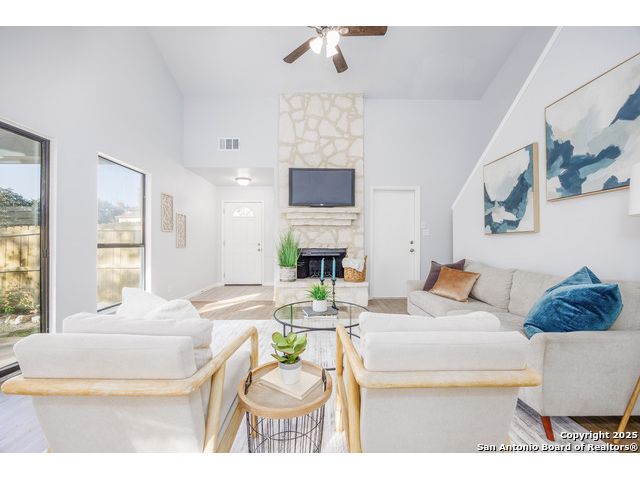 BEAUTIFUL READY TO MOVE IN HOME. WALK INTO THIS VERY BRIGHT, NATURAL LIT HOME LAID OUT IN A SPACIOUS MANNER. LIVING AREA HAS A NICE STONE FIREPLACE WITH HIGH CEILINGS. MASTER BEDROOM DOWN STAIRS AND ALL NEW FLOORING THROUGHOUT. NO CARPET DOWNSTAIRS. NEW COUNTER TOPS IN KITCHEN AND BATHROOMS. NEW APPLIANCES IN KITCHEN. ALL NEW ELECTRICAL AND PLUMBING HARDWARE THROUGHOUT. SECONDARY BEDROOMS UPSTAIRS WITH NEW CARPET. NICE SLIDING GLASS DOOR WHICH LEADS OUT TO A LARGE FENCED IN BACKYARD WITH A MATCHING SHED AND A GREENHOUSE. SCHEDULE YOUR SHOWING TODAY.