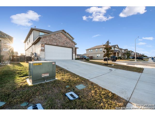 Spacious 4-bedroom, 3-bath corner-lot home with 2,472 sq ft, featuring a primary suite upstairs with a huge walk-in closet and a secondary bedroom with full bath downstairs ideal for guests or multigenerational living. Open concept kitchen with granite countertops, upstairs loft, covered back patio, paid-off solar panels, and a rare assumable VA loan at approximately 2.5 interest (buyer qualification required).