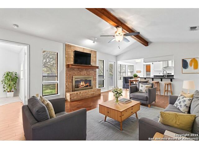 Priced to sell! Don't miss out on this one! Super cute 1 story home in San Pedro Hills! HVAC replaced in 2024! Roof replaced in 2020! The entire house and trim just got painted! Brand new carpet in the bedrooms! 3 Bedrooms, 2 Full bathrooms, HUGE backyard, perfect for hosting all of your family and friends for backyard BBQ's and yard games! Walking distance to Thousand Oaks Elementary! Feeds into Bradley Middle school! Minutes away from McAllister Park! HEB, shopping, tons of restaurants, Pizza Italia, Evil Olive, Giuseppe's Italian Grill & Pizzeria, Fish City, PHO 3 all literally minutes away from your home! Amazing access to 281, 1604 and 410! What more could you ask for? How about You the beautiful vaulted ceiling in the living room! Wonderful fireplace! Award winning NEISD school district! Come and see this house today!