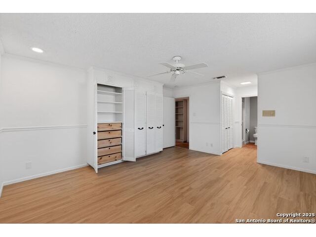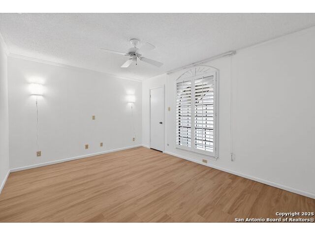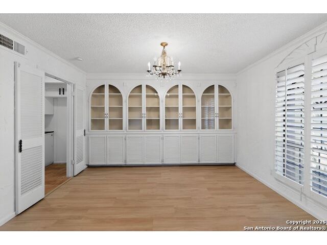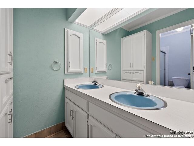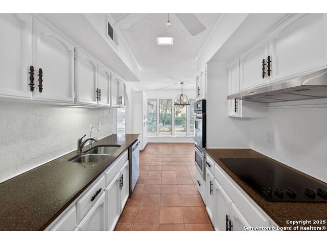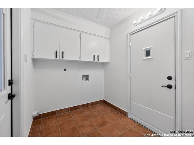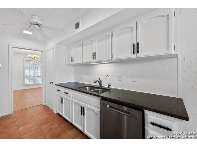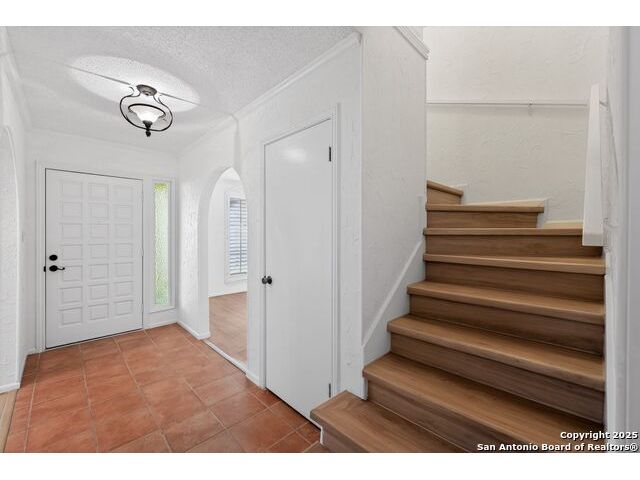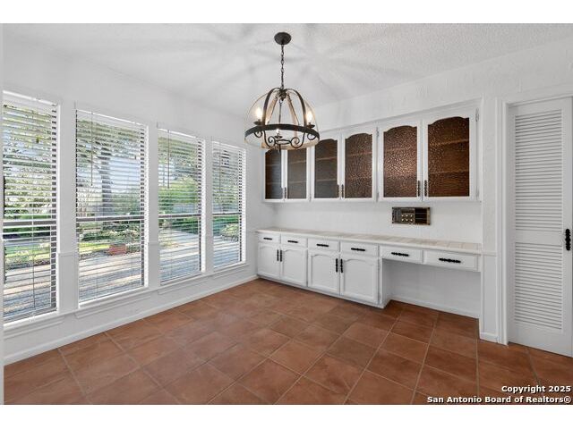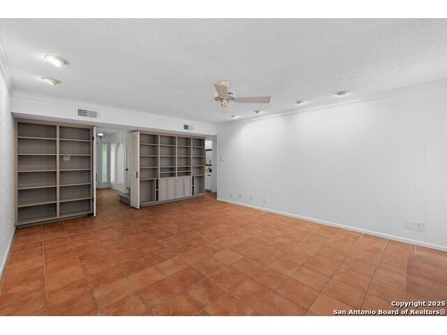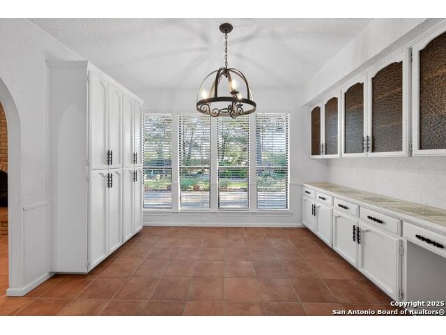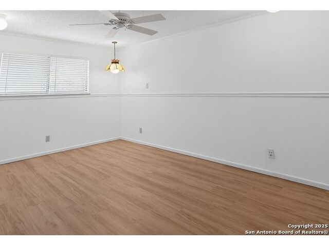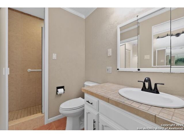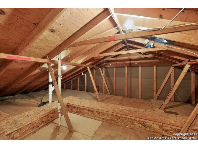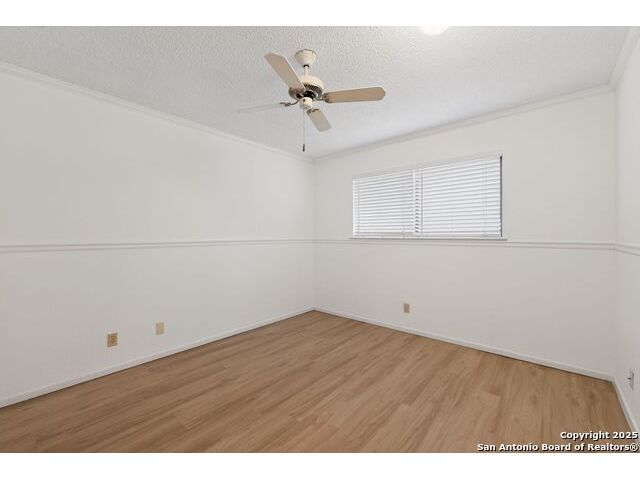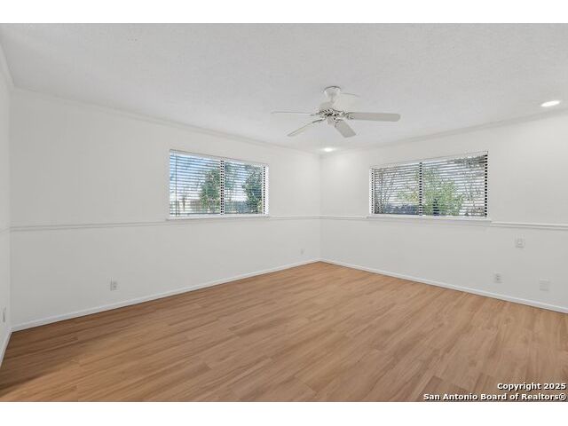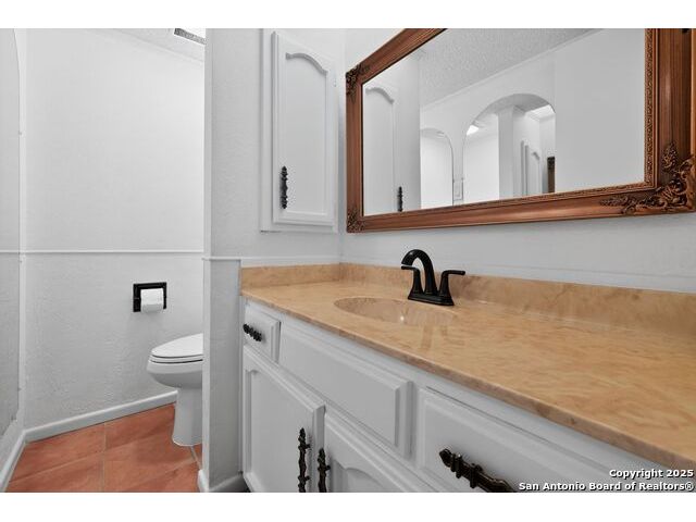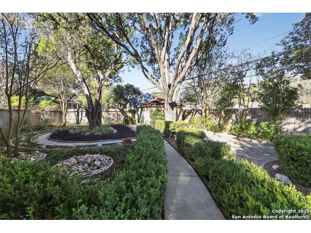 This 4-bedroom, 2 1/2-bath, 2330 sq. ft. home sits on a quiet, 0.35-acre, cul-de-sac in the conveniently located off gold canyon. The features of this beautiful home include: Great curb appeal with attractive landscaping, a pebble-finished driveway and sidewalks; a new roof with impact-resistant shingles; new kitchen appliances (oven, microwave door, dishwasher and range); a reverse osmosis water conditioner; a new water softener; a fourteen-month-old electric air conditioning/gas heating system; and a three-year-old gas water heater. A pebble-finished, party-sized (45' X 15') patio in the beautifully landscaped backyard with attractive beds, brick-lined paths, pole lights, a 12' X 13' tool shed, and a square-foot vegetable garden ready to plant. The National Wildlife Federation certified this serene retreat a "backyard wildlife habitat." Behind the gated fence is an easement with convenient access to the San Antonio Mud Creek Park's hiking and biking trails. This home has generous-sized rooms with either ceramic tile or new, (22-mil) luxury vinyl plank floors, and attractive window blinds: Off the foyer, is a 12'11" X 11'4" formal dining room with wall-to-wall glass-fronted cabinets and a crystal chandelier. On the opposite side of the entrance hall, is a spacious formal living room, or office, or home theater, or bar/game room (19'6" X 10'10"). A large coat/utility closet sits under the stairs and the hallway leads to the den (19'8" X 14'7") with built-in bookshelves, a brick fireplace/gas-assist fire starter, and an adjoining guest half-bath. A dining room (13'10" X 10'7") with a wall-to-wall built-in buffet and a tall cabinet with six shelves (measuring 47" W X 14" D each), adjoins the galley kitchen (12'7" X 8') with solid-surface countertops, new GE appliances, and a large pantry. Off the dining room is the laundry/mud room (12'3" X 7'5") with wall cabinets and space for a second refrigerator/freezer. The main bedroom (21'7" X 14'), on the first floor, has a stand-in closet that includes a fifteen-shelf shoe-rack; a bifold-door closet with a five-shelf shoe-rack; a wardrobe cabinet with twelve shelves and fifteen drawers; and a single-sink bathroom with an enclosed shower. The upstairs includes three spacious bedrooms (a 14' X 10'11" bedroom with a stand-in closet; a 16'7" X 15' bedroom with a bifold-door closet; and a 12'3" x 11' bedroom with a closet that has stand-in access to a roomy, well-lit attic); a double-sink bathroom with a tub/shower combo and sliding, glass doors; and a 13' x 4' balcony that faces the front yard. There is ample storage throughout this home, including a second attic, accessible from a pull-down ladder in the two-car garage. The finished garage features wall-to-wall cabinets; a fifteen-shelf hardware cabinet with wood bins; a four-shelf tool cubby; an 8' W X 2' D work bench with wall cabinets; automatic garage-door openers, and vinyl flooring with matching trim.