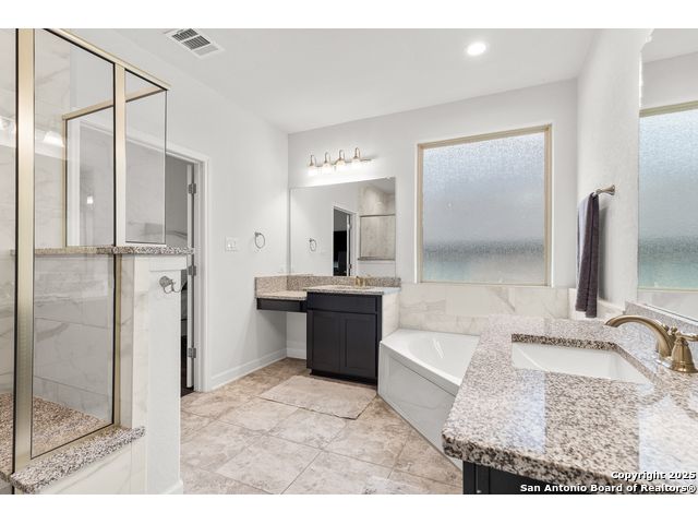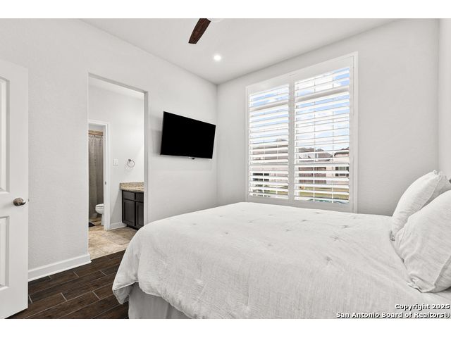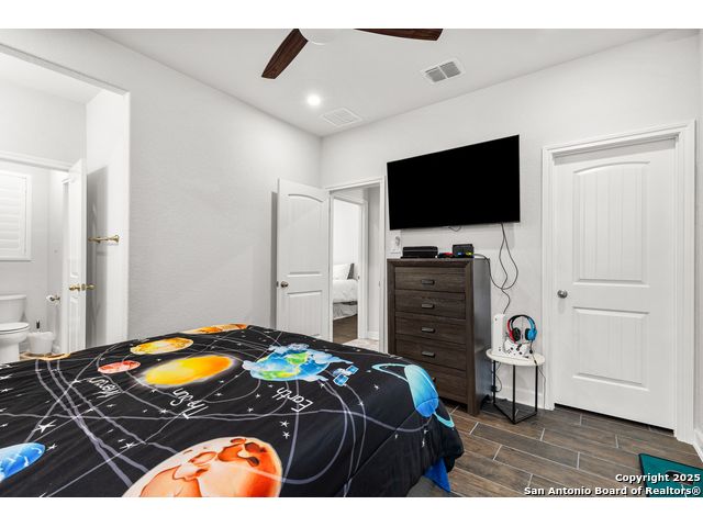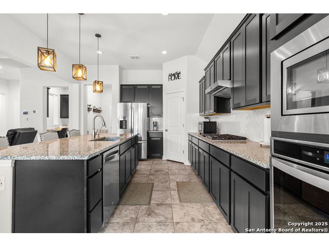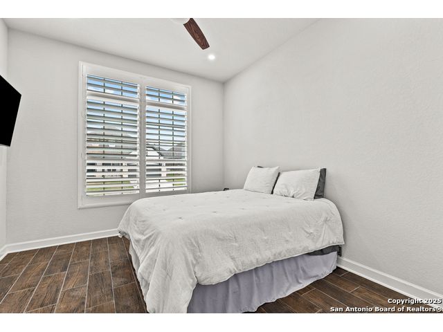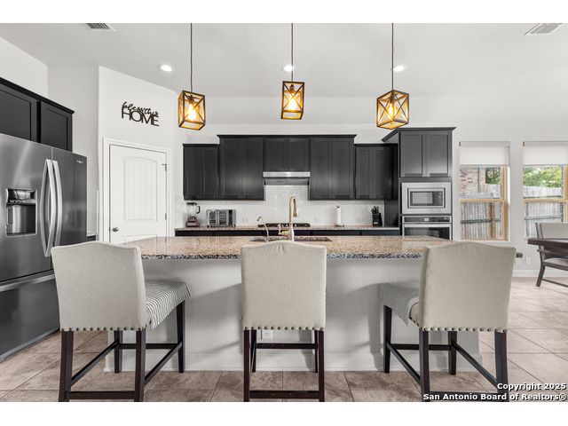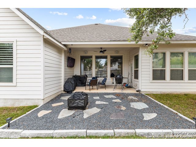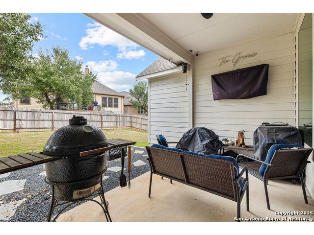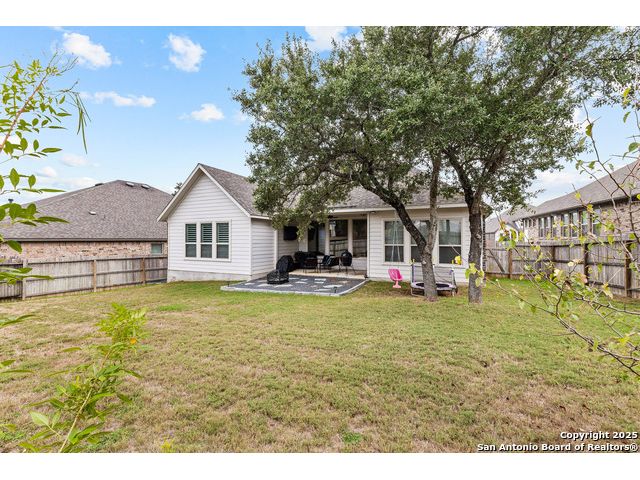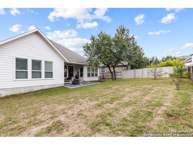 Welcome to The Preserve at Singing Hills, where comfort, style, and thoughtful upgrades come together in this beautifully maintained 4-bedroom, 3-bathroom, 2,343 sq ft home. Designed for both everyday ease and elevated living, this single-story layout blends modern finishes with timeless Hill Country charm. Step inside to an inviting open floor plan with tile flooring throughout showcasing wood plank tiles in the bedrooms, upgraded lighting, recessed lighting, and premium window treatments, including plantation shutters and remote-controlled electric blinds in the living room. Modern ceiling fans and updated fixtures add a polished, cohesive feel throughout the home. The spacious living area is perfect for gathering, featuring built-in surround sound speakers both inside and on the back patio-ideal for movie nights or relaxing mornings. The kitchen stands out with modern pendant lighting, upgraded fixtures, and a functional layout designed for cooking and entertaining. A robust suite of smart and security features elevates the home even further, including a full Swann security camera system, smart exterior security lighting, motion-sensor lights, a smart thermostat hub. Outside, upgraded landscaping with stone edging enhances curb appeal, while the covered patio-complete with built-in speakers-creates a peaceful outdoor retreat for unwinding or hosting friends. Located in the desirable Preserve at Singing Hills, this home sits amid Hill Country beauty and neighborhood charm. Enjoy nearby attractions such as Guadalupe River State Park, Canyon Lake, scenic trails, and abundant outdoor recreation. Everyday conveniences, shopping, and dining are just minutes away at Singing Hills Shopping Center, with quick access to Hwy 281 for easy commuting. Blending modern upgrades, smart home features, and thoughtful design, this home offers exceptional living in one of Spring Branch's most inviting communities.